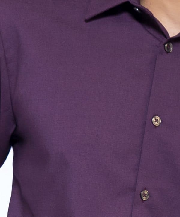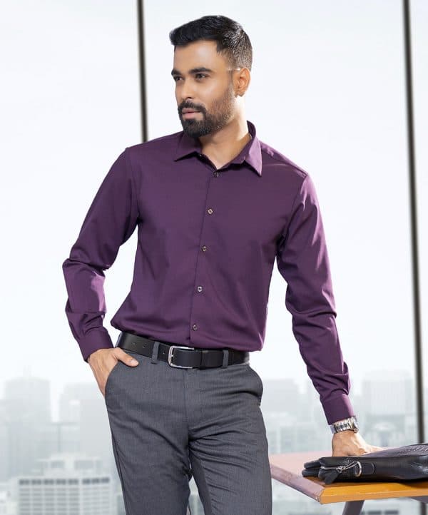 Purple business formal shirt in premium-quality Viscose blended fabric. Designed with a classic collar and long-sleeved with adjustable buttons at cuffs. Slim fit.