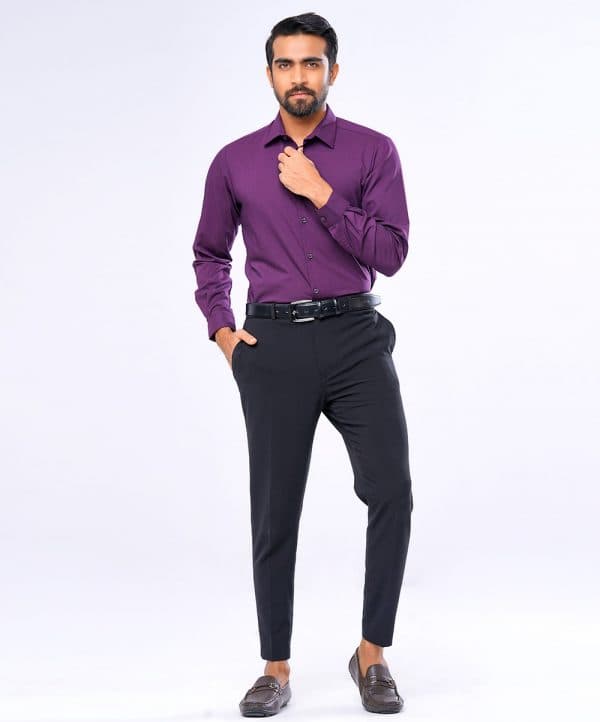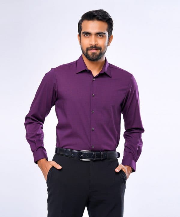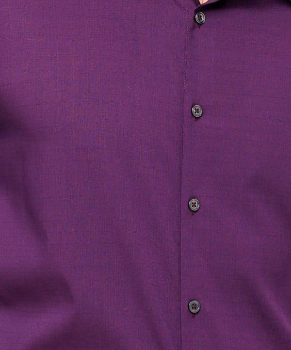 Purple business formal shirt in premium-quality Viscose blended fabric. Designed with a classic collar and long-sleeved with adjustable buttons at cuffs. Slim fit.