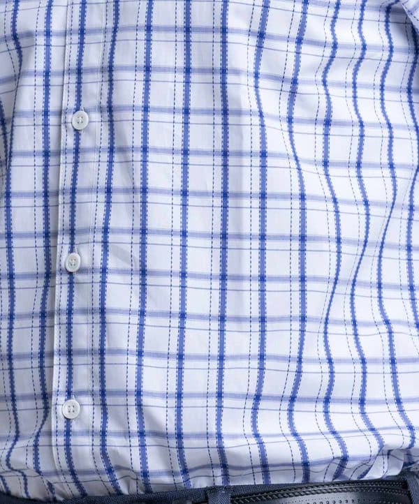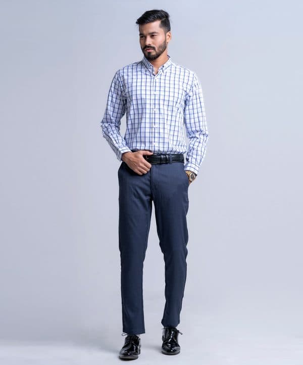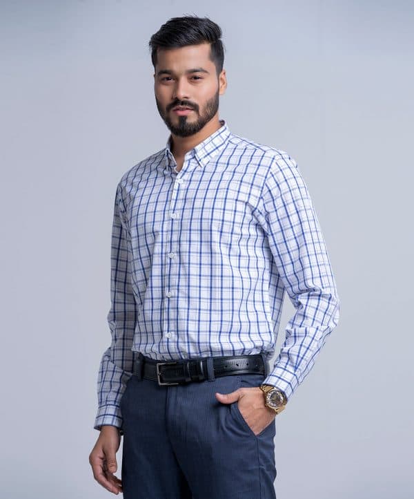 White check business formal Shirt in premium-quality Cotton fabric. Designed with a classic collar and long-sleeved with adjustable buttons at cuffs. Regular fit.