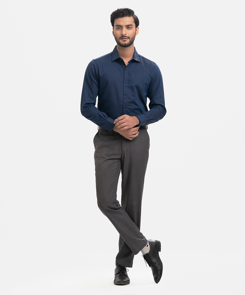 Navy Blue Cotton Business Formal Shirt