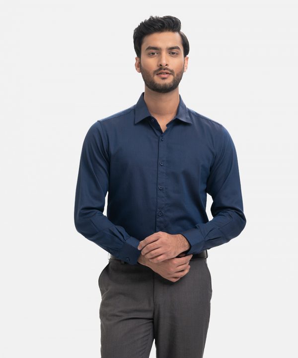 Navy Blue Cotton Business Formal Shirt