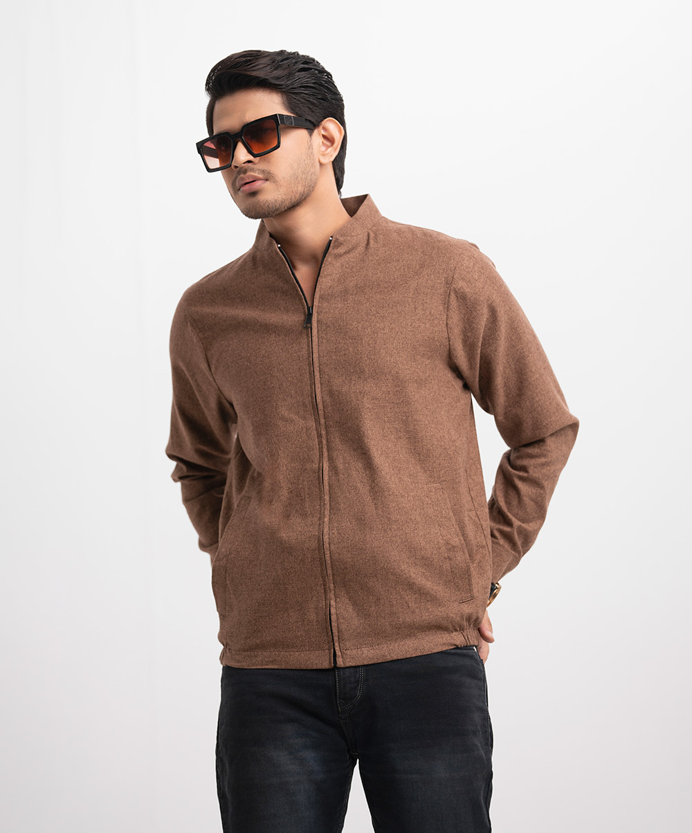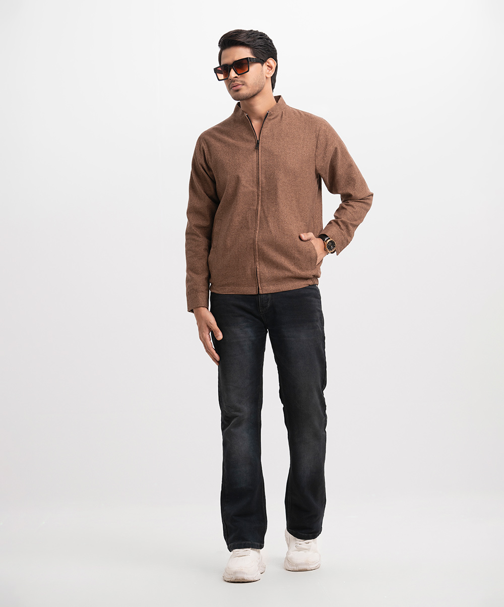 Men’s bomber jacket in cotton-blend fabric. Stand-up collar, zip at front & diagonal welt side pockets. Quilted lining.