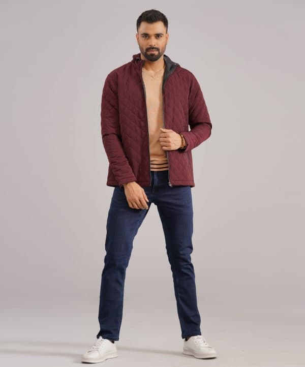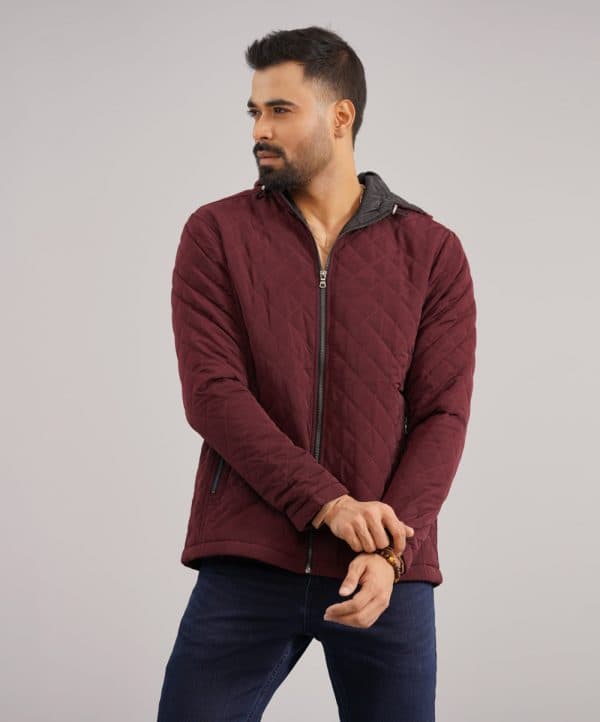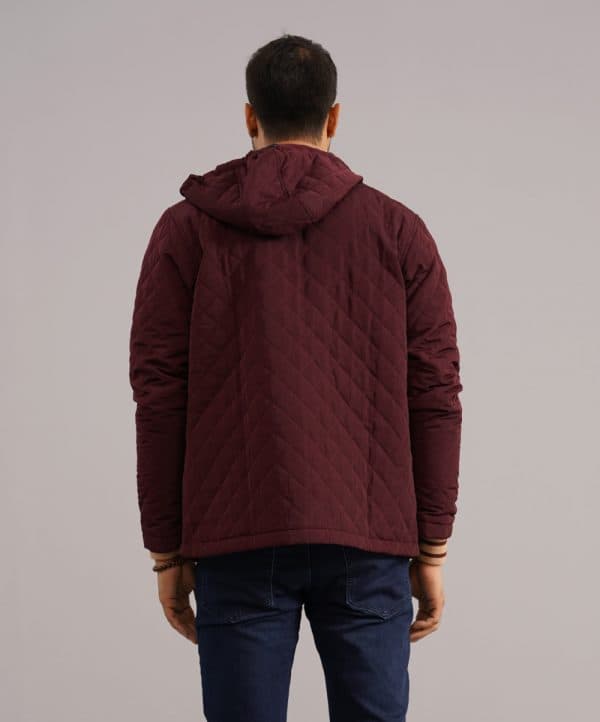 Quilted technical bonded hooded jacket. Zip opening and long sleeve