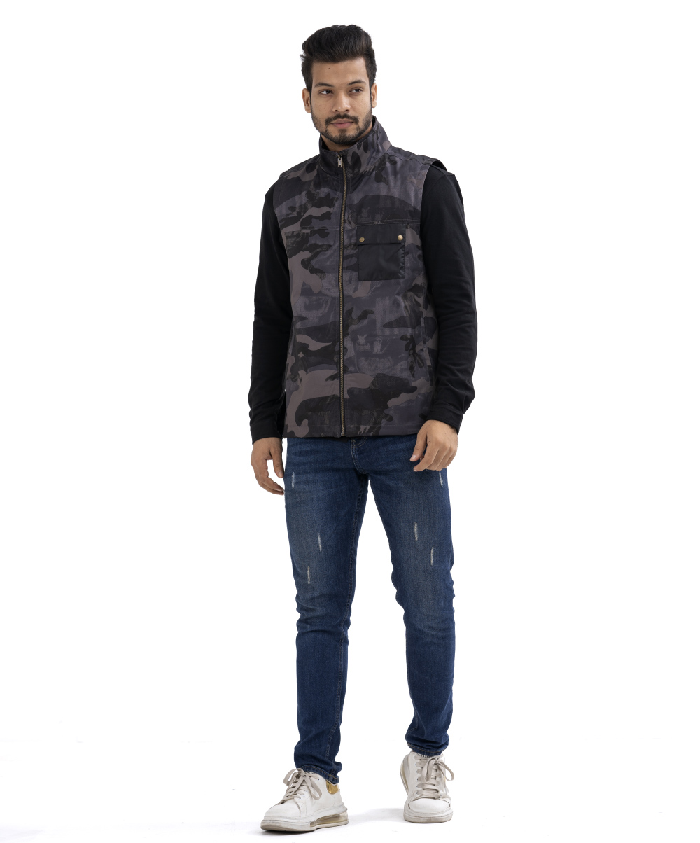 Casual Jacket in Taffeta fabric with stand-up collar. Zip down the front, a flap and press-studs and side pockets with a concealed zip for safe storage of small items.