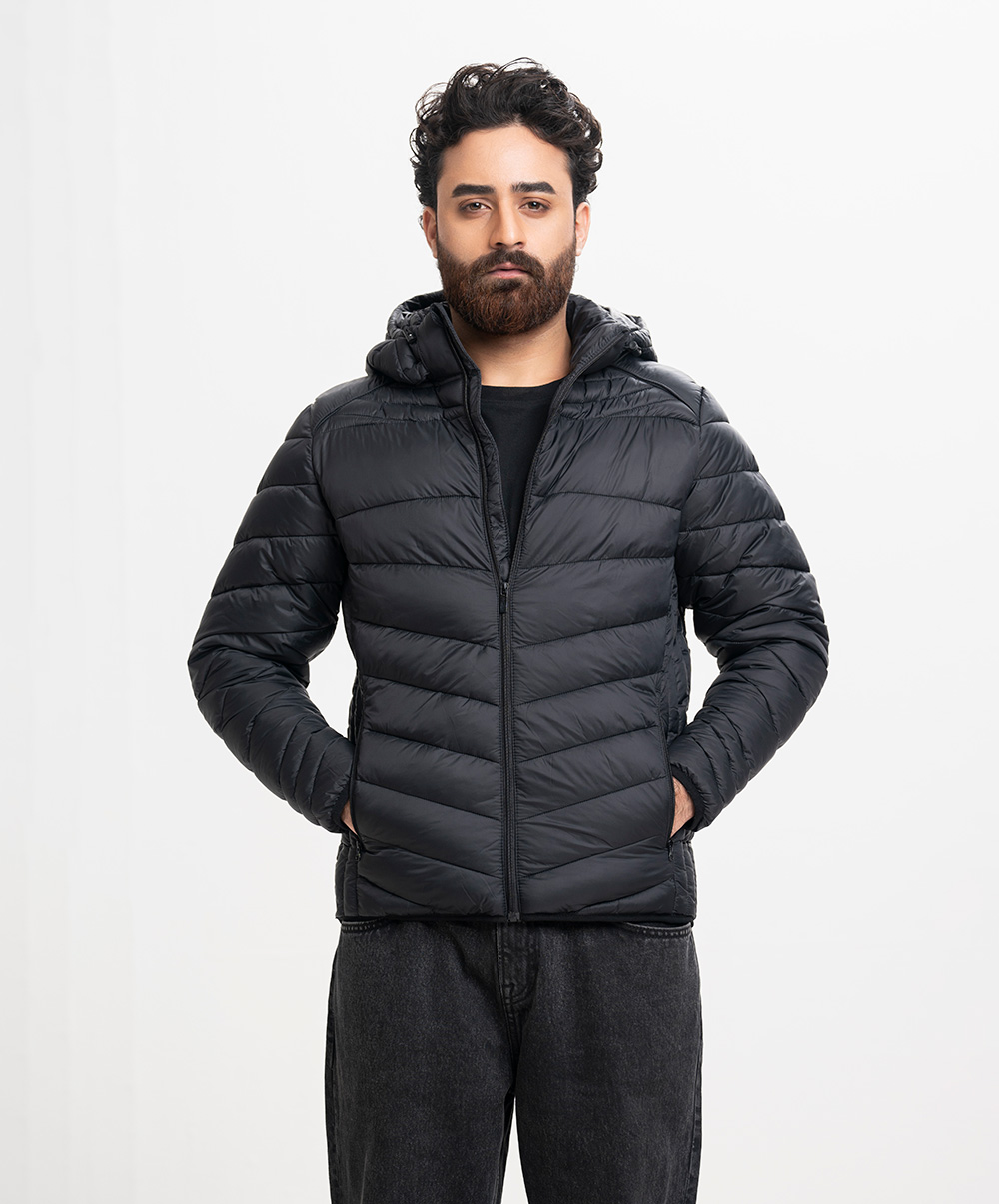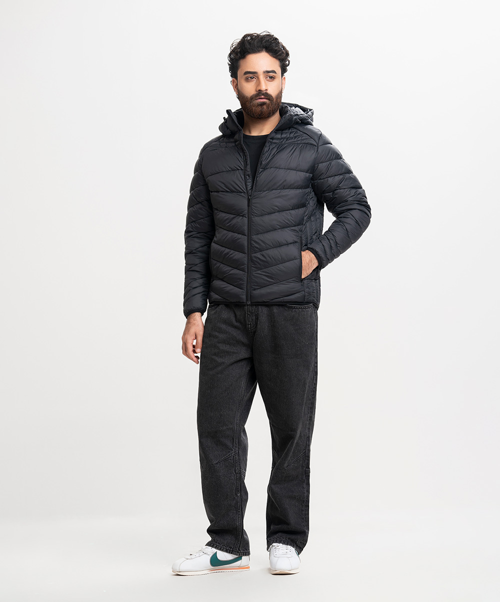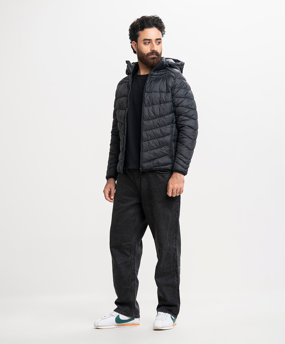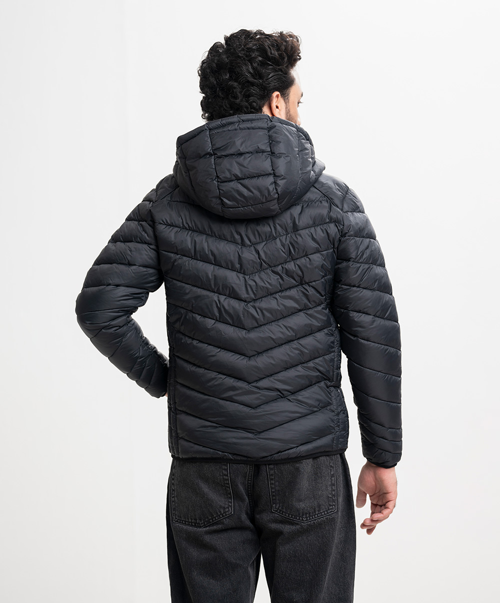 Black Taffeta Hoodie Puffer Jacket