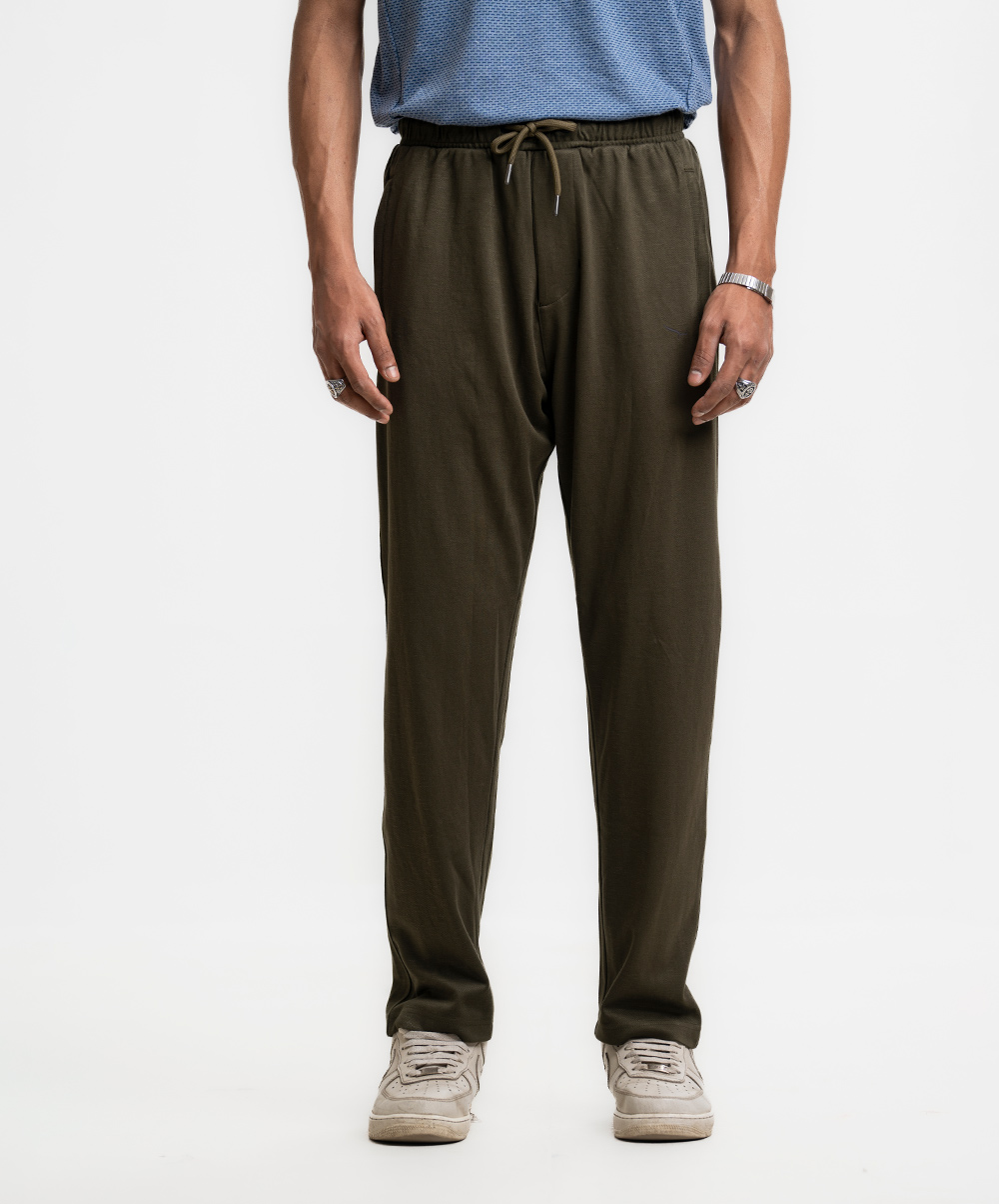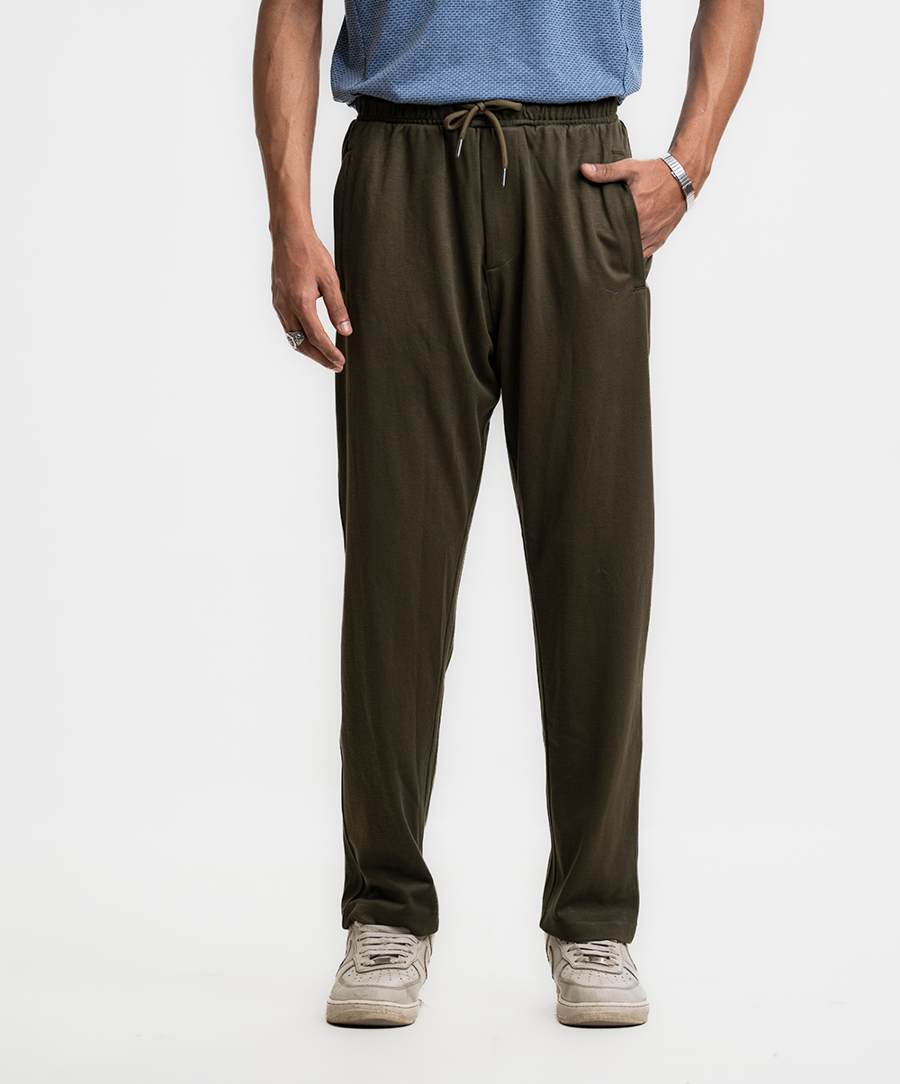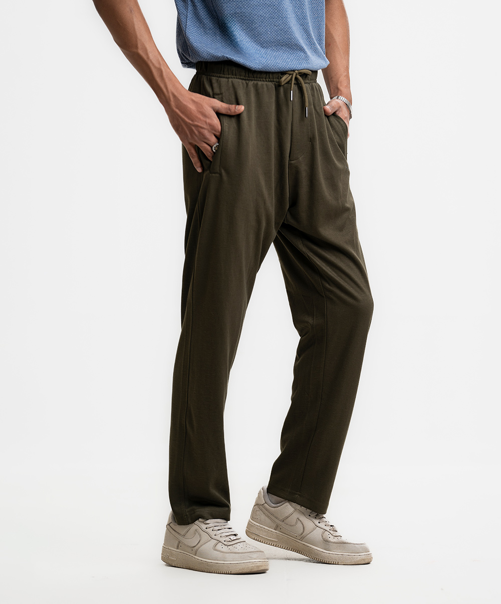 Men’s casual trouser in Interlock fabric. Concealed elasticated waistline with an adjustable drawstring and two zippered side pockets.