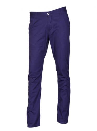 Men’s slim-fit chinos in blended cotton fabric. Front zip fly with button, diagonal side pockets, and welt back pockets.