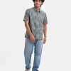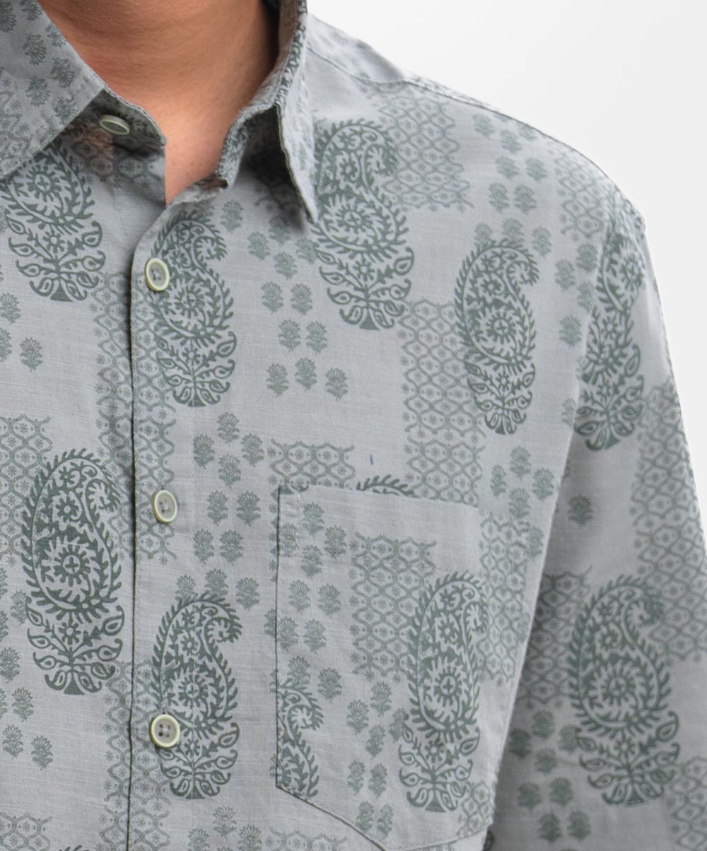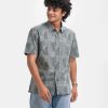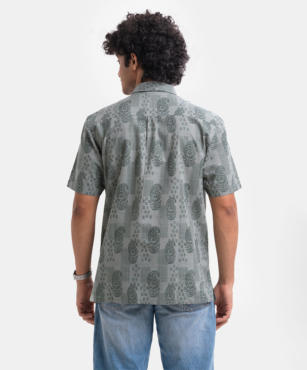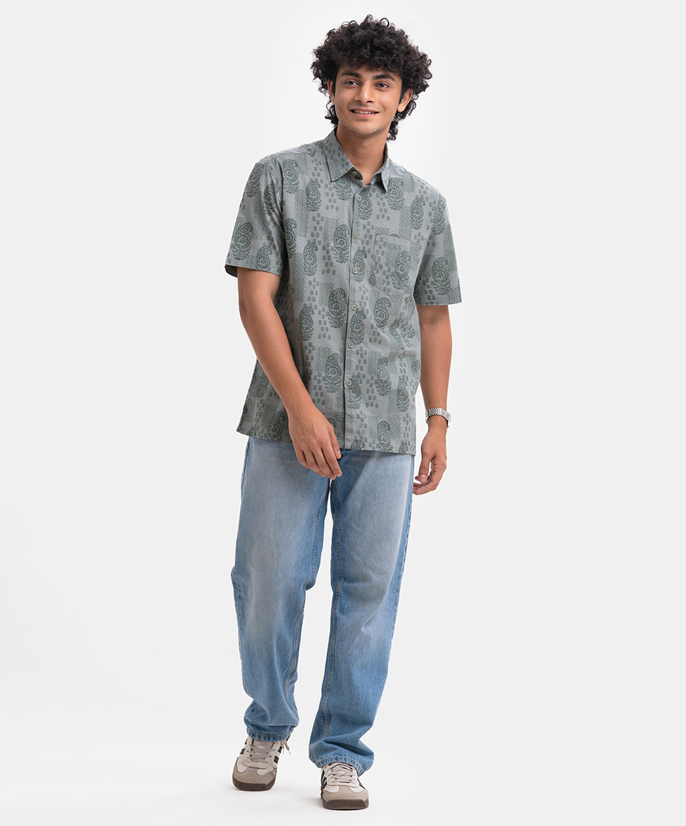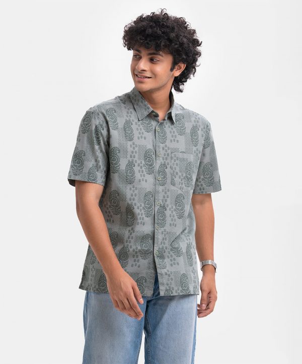Short-sleeved comfort shirt in slab cotton fabric. Classic collar with a pocket on the chest.