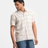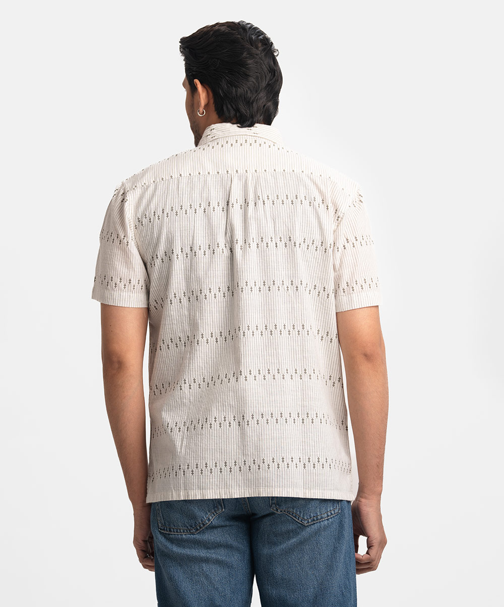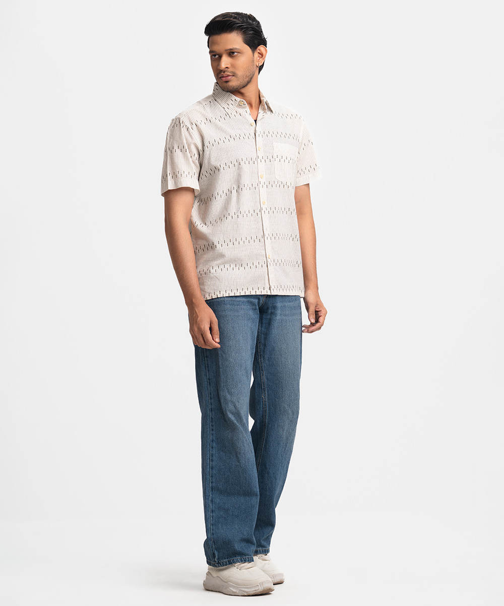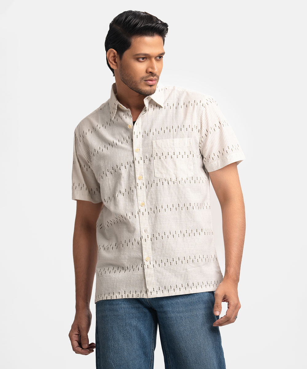 Short-sleeved comfort casual shirt in cotton slab fabric. Classic collar, single chest pocket.