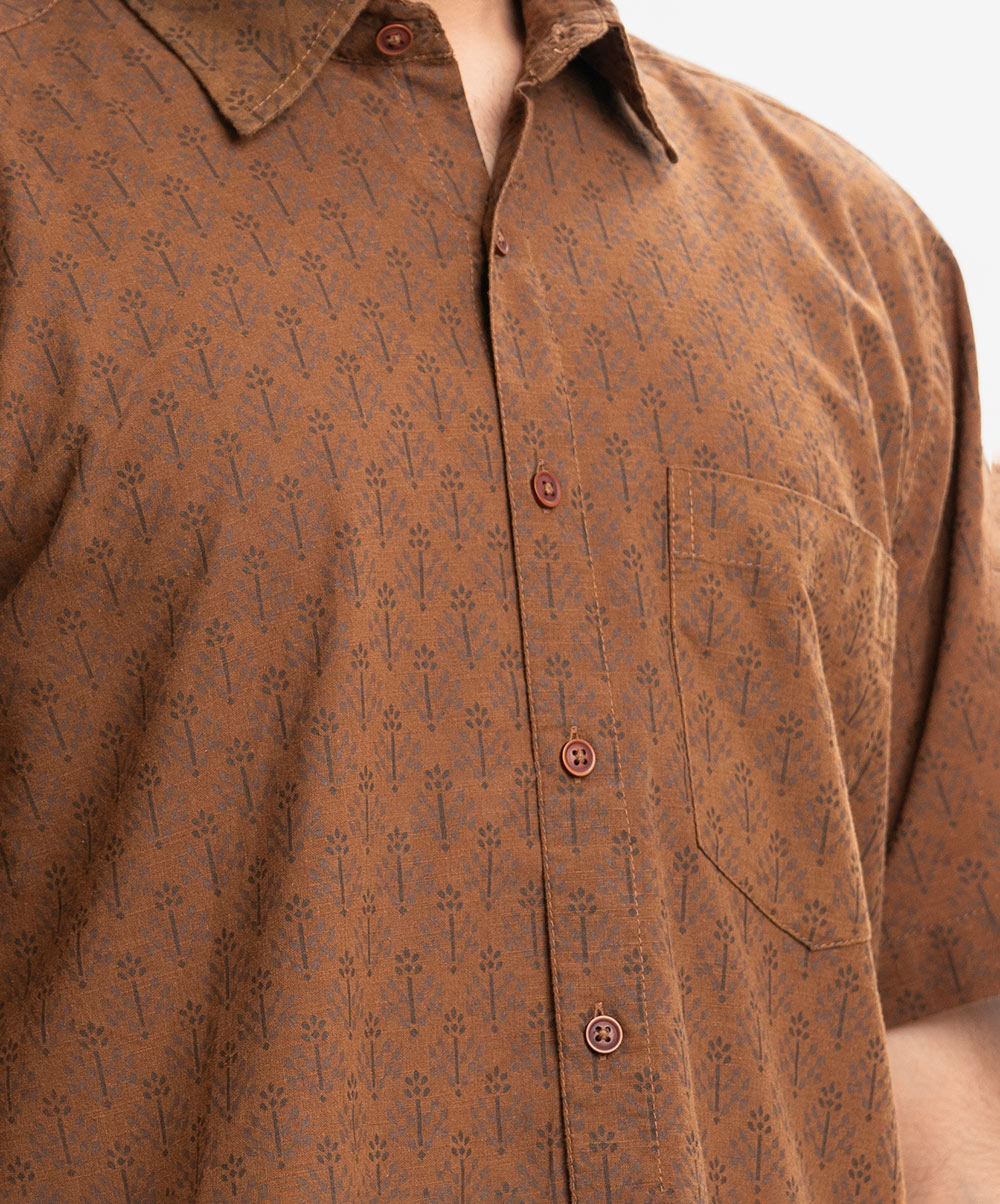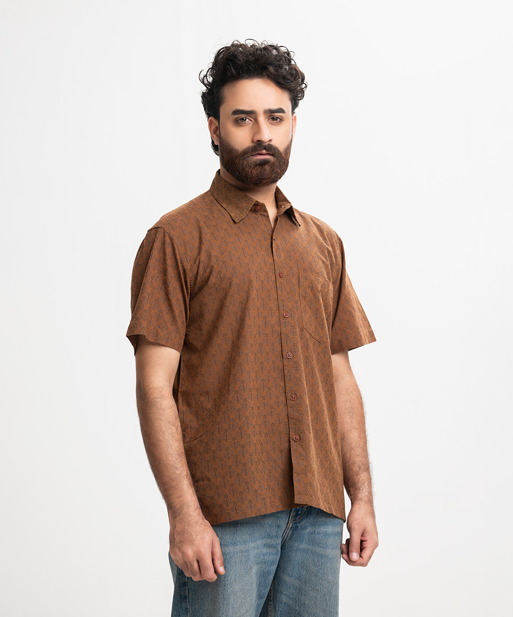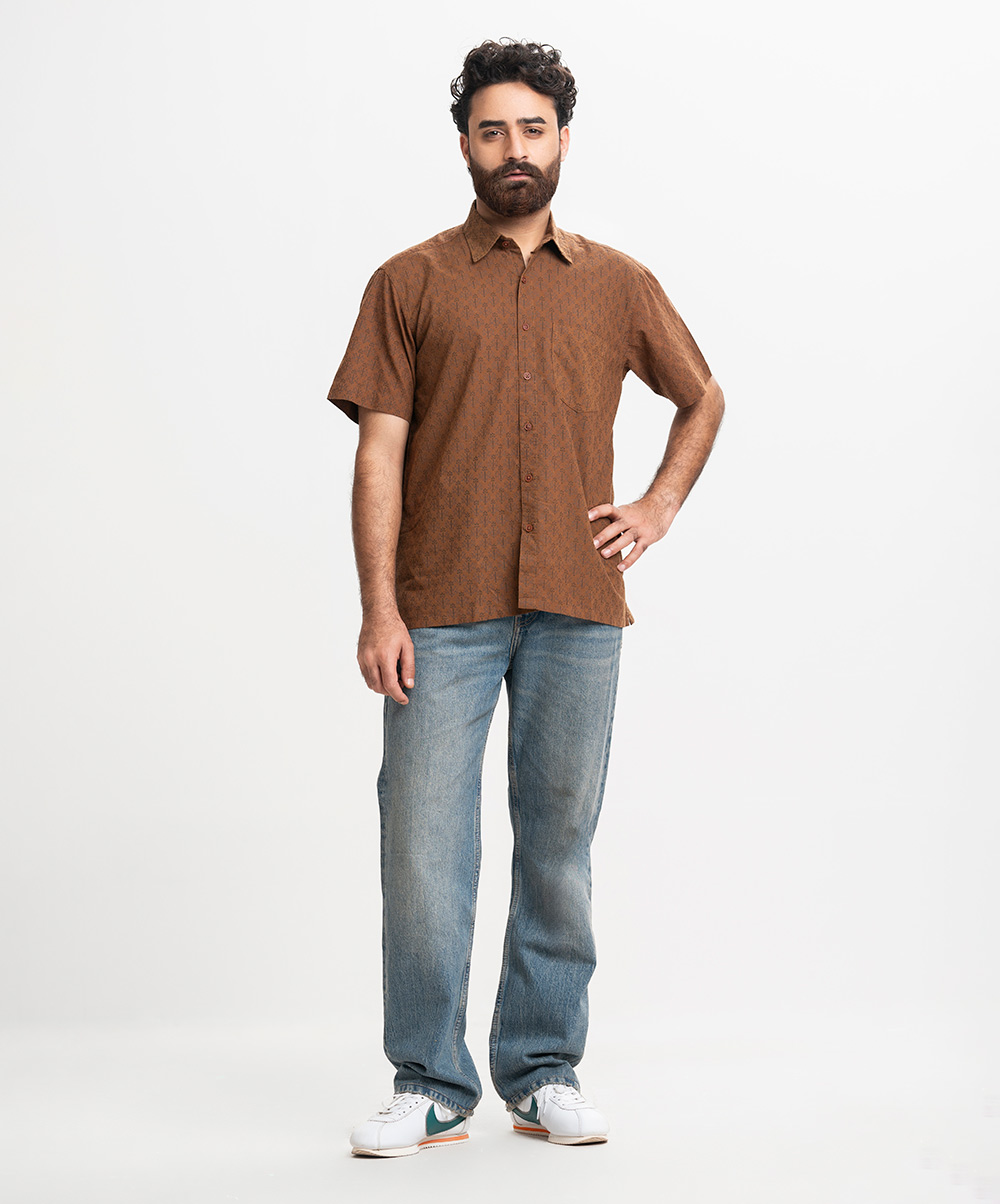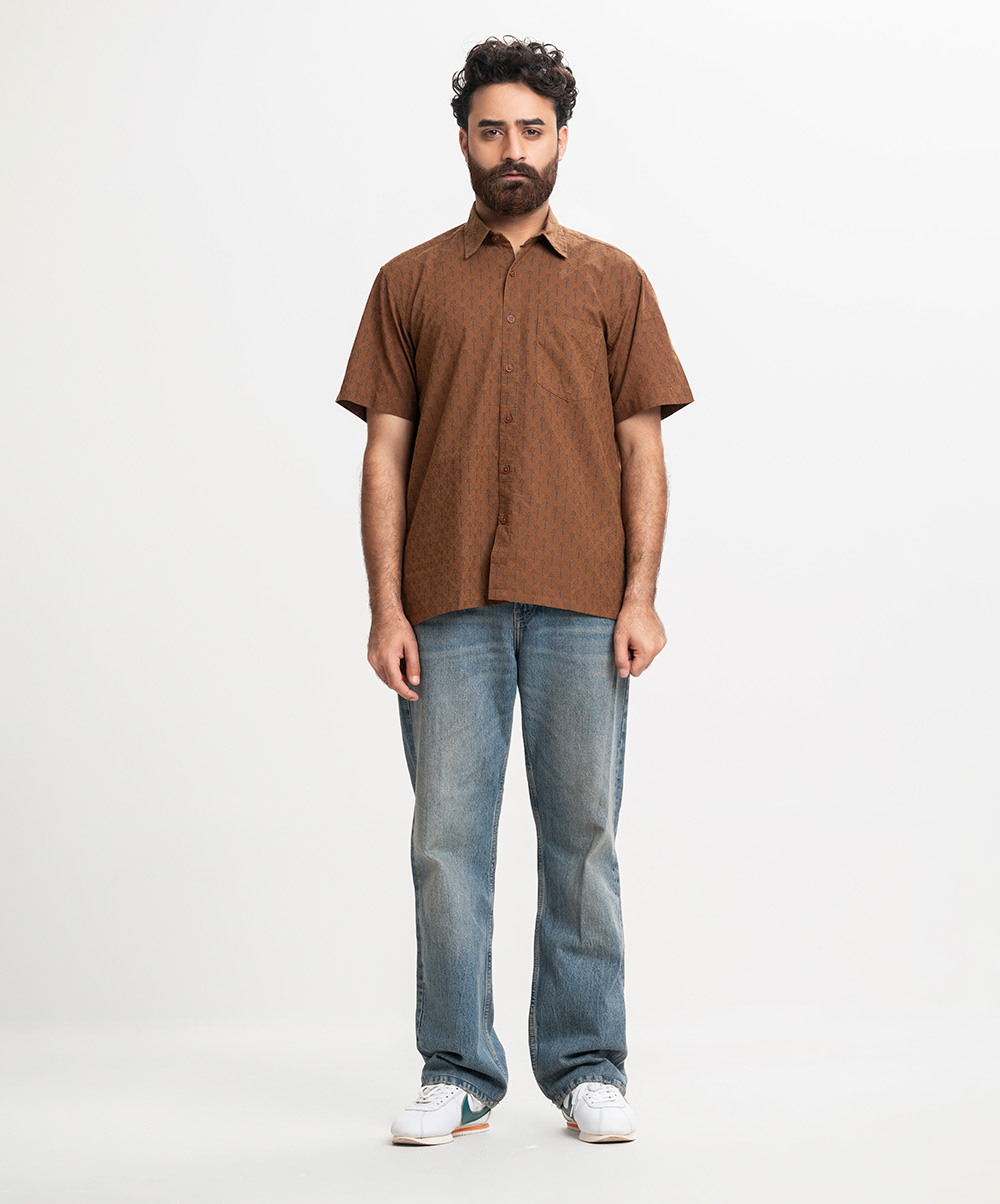 Brown Slab Cotton Comfort Casual Shirt