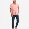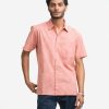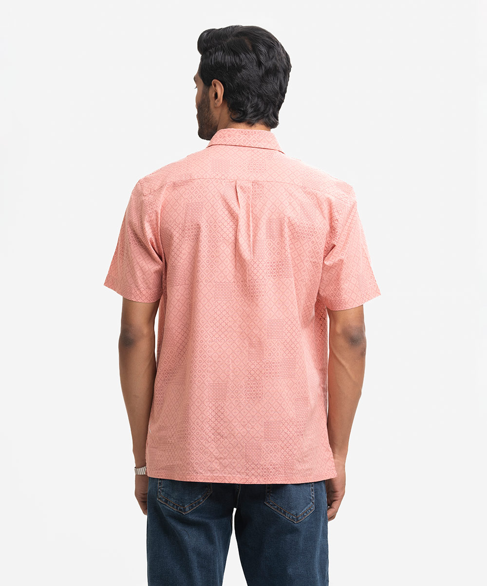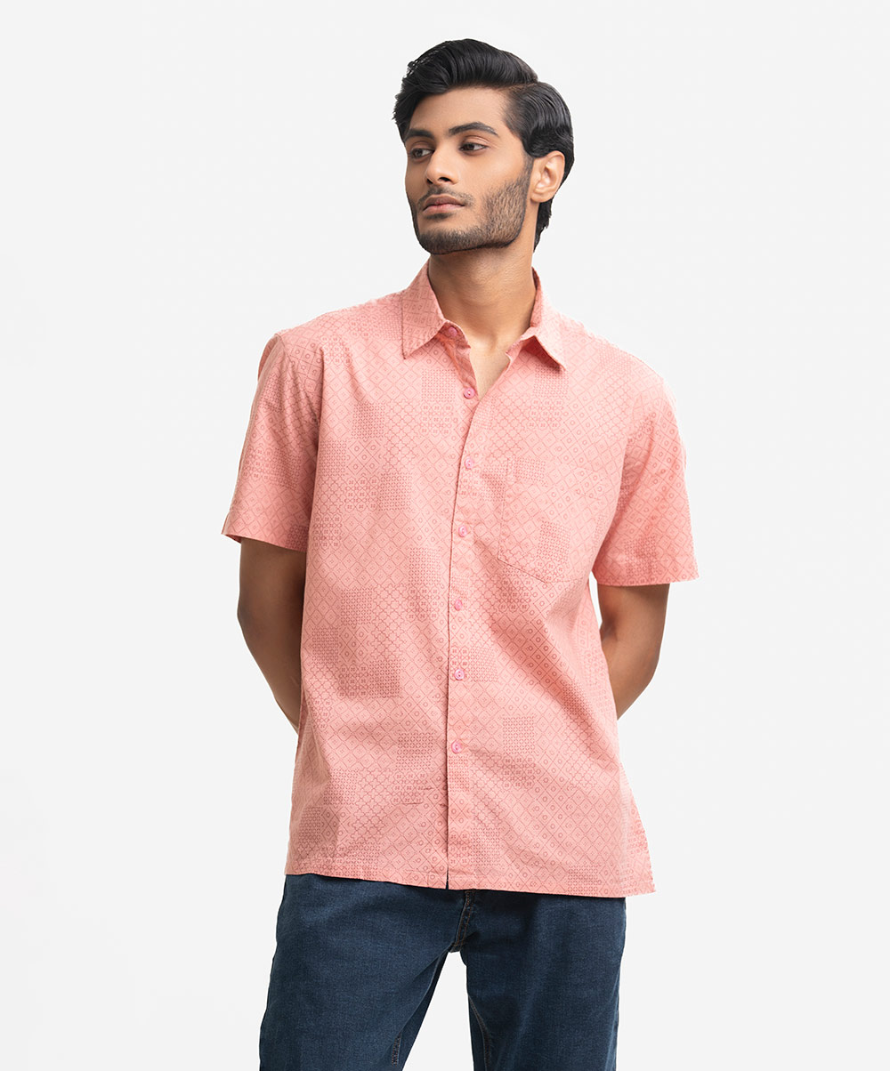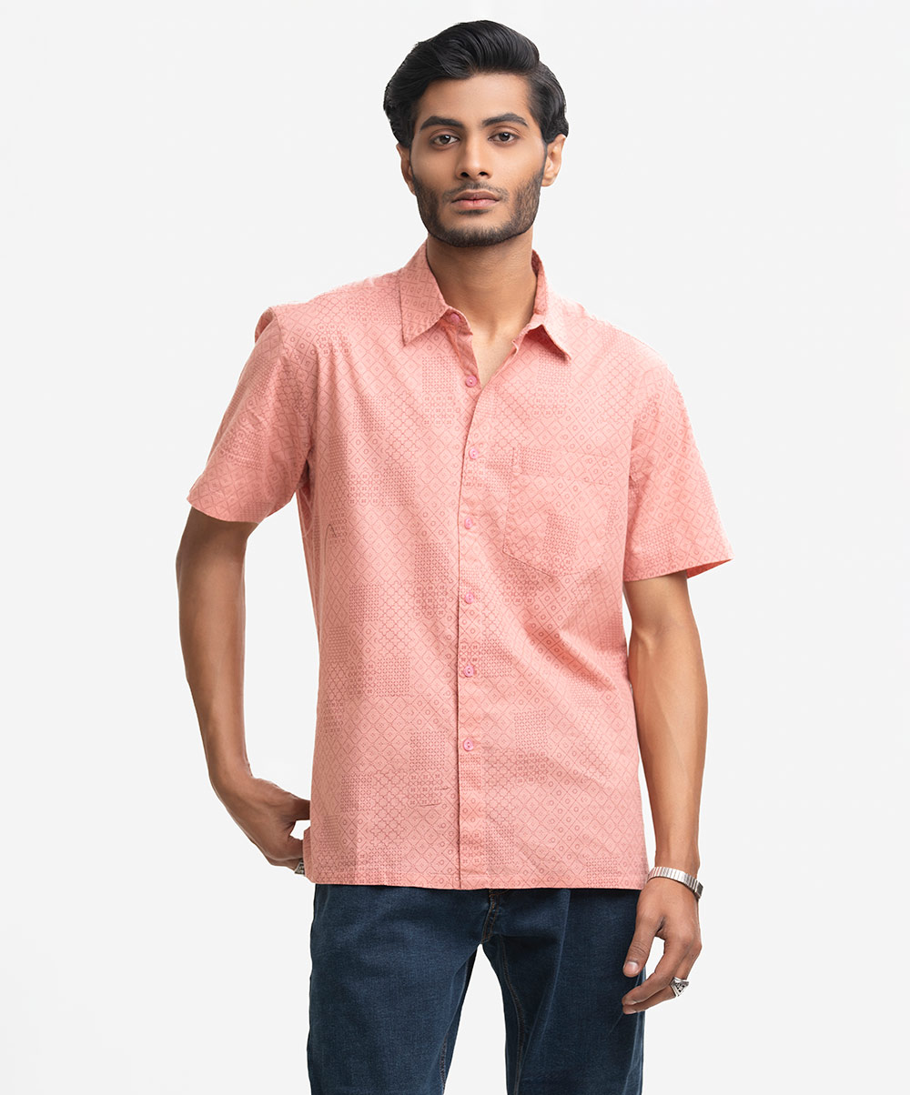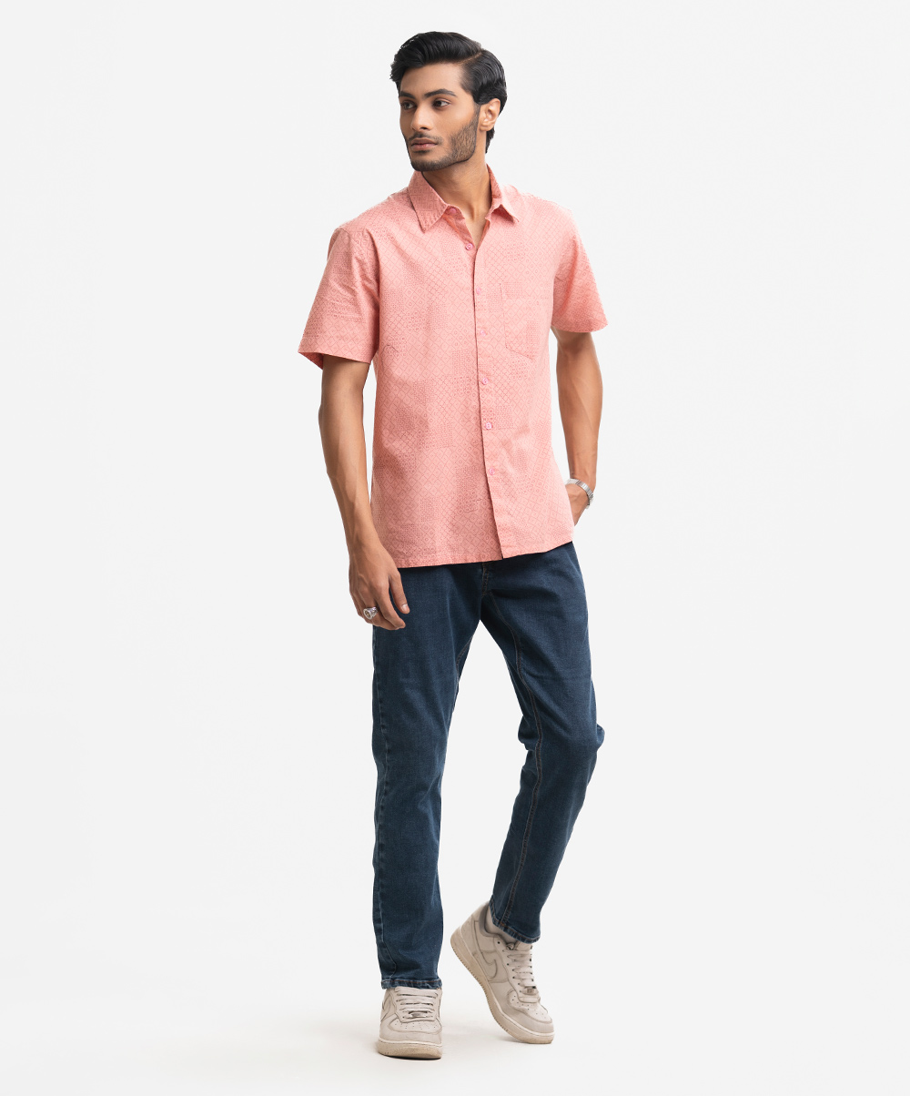 Short-sleeved comfort casual shirt in cotton slub fabric. Classic collar with a single chest pocket.