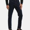 Men’s slim fitted jeans pants in cotton blended denim fabric. Five pockets, button fastening on the front and zipper fly.