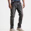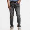 Men’s jeans pants in cotton blended denim fabric. Five pockets, button fastening on the front and zipper fly.