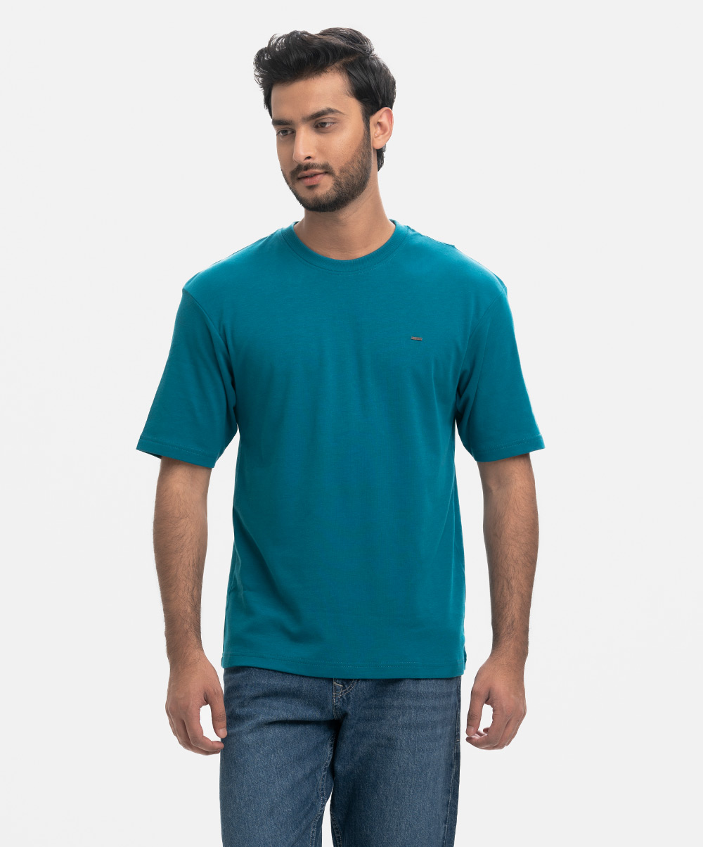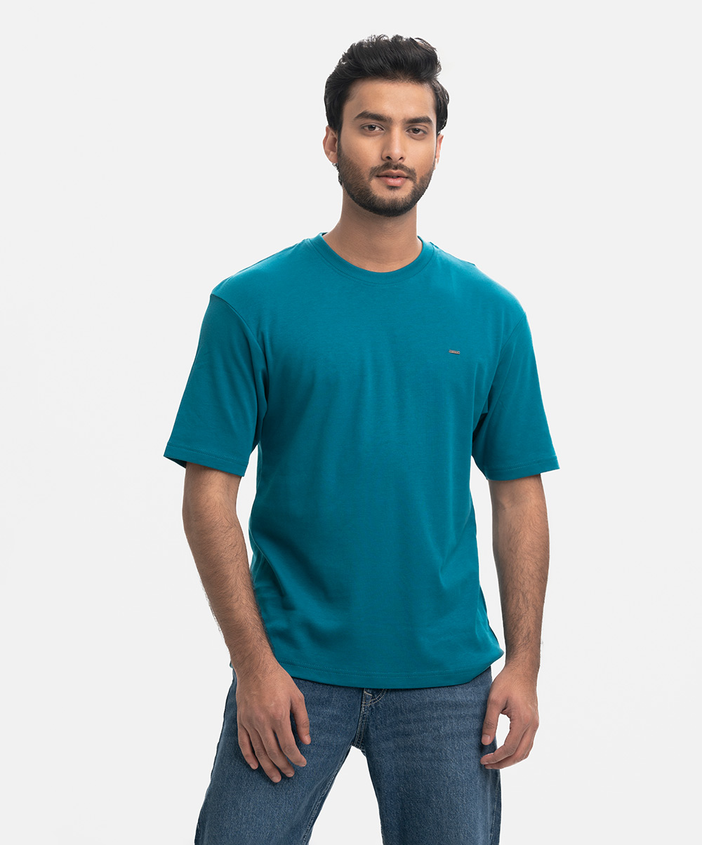 Teal Interlock Drop Shoulder T-Shirt