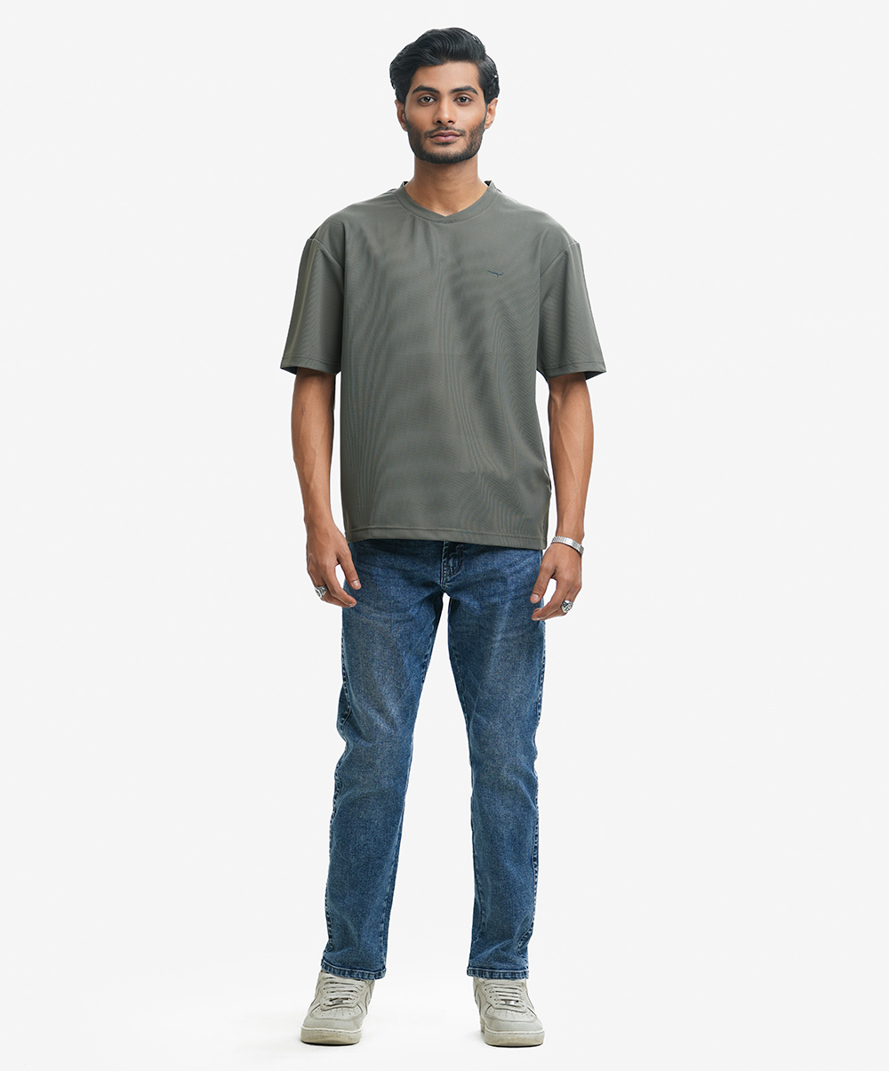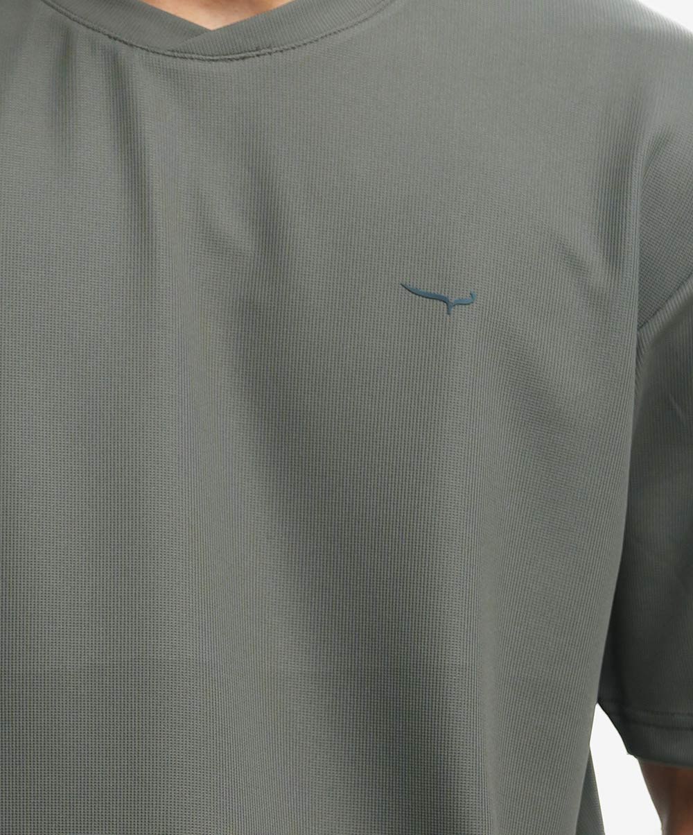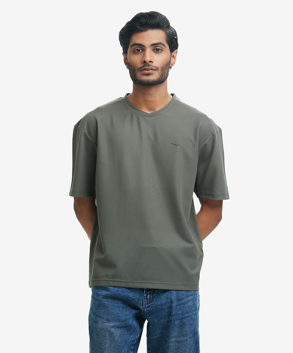 Men’s drop shoulder t-shirt in stretchable pique fabric. Round neck and short-sleeves.
