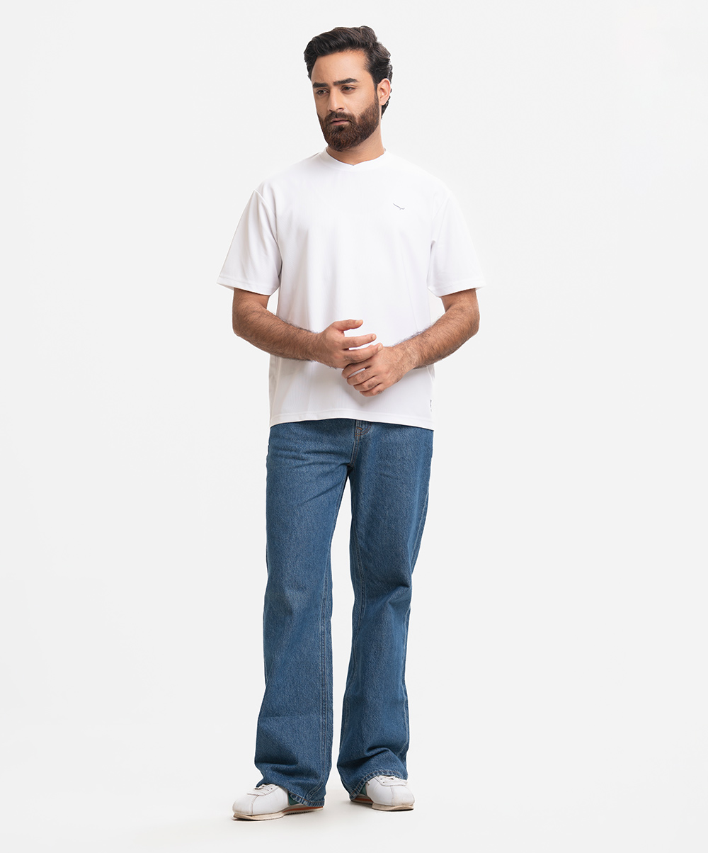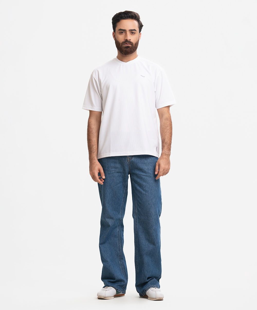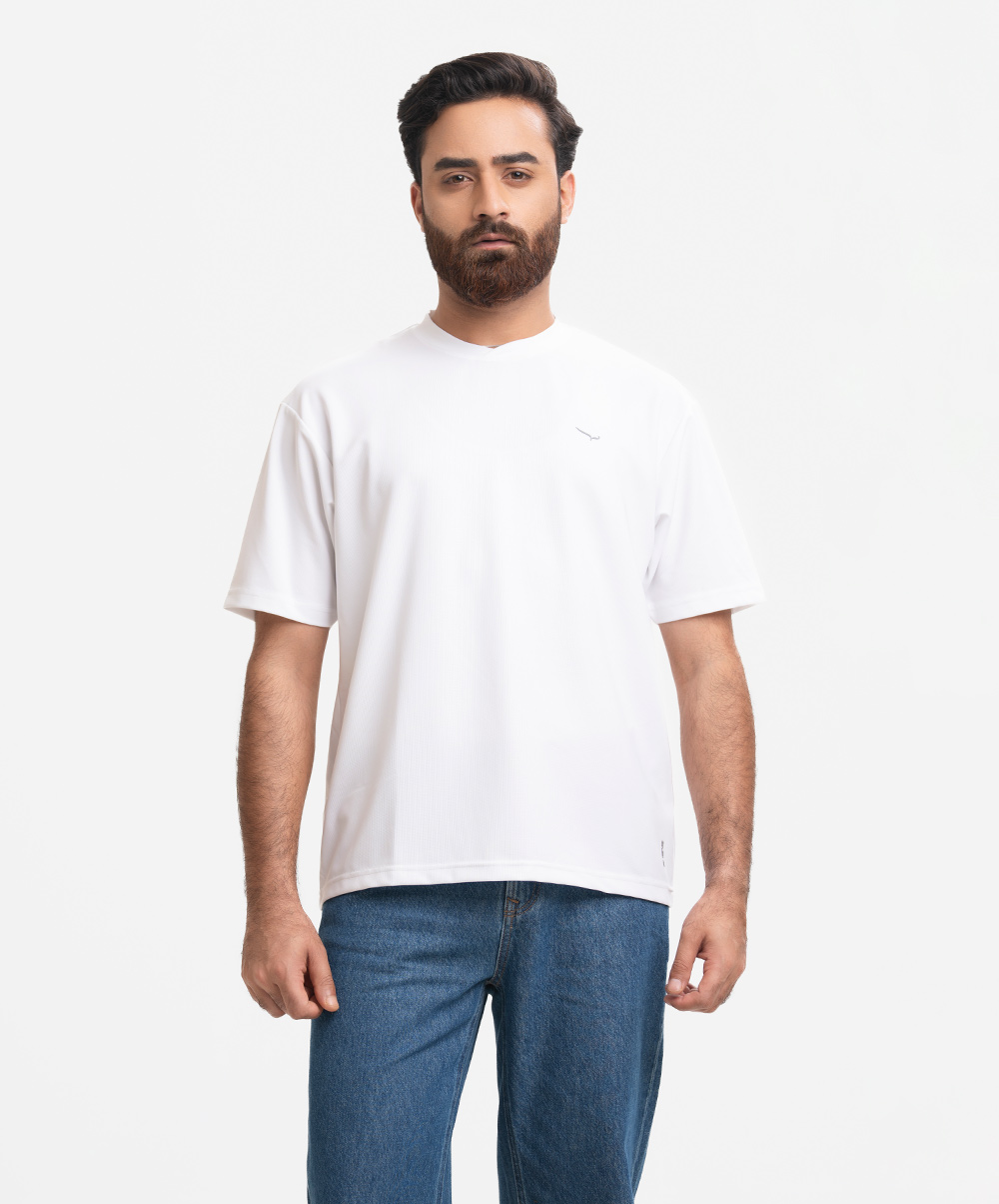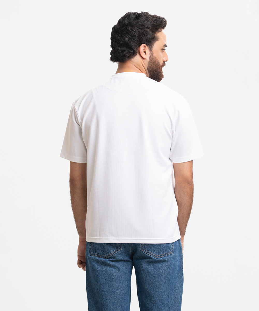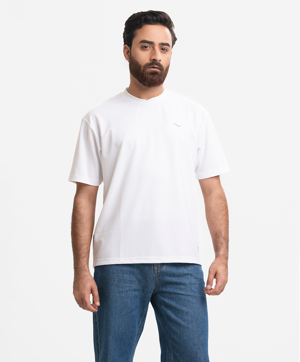White Pique Knit Drop Shoulder T-Shirt