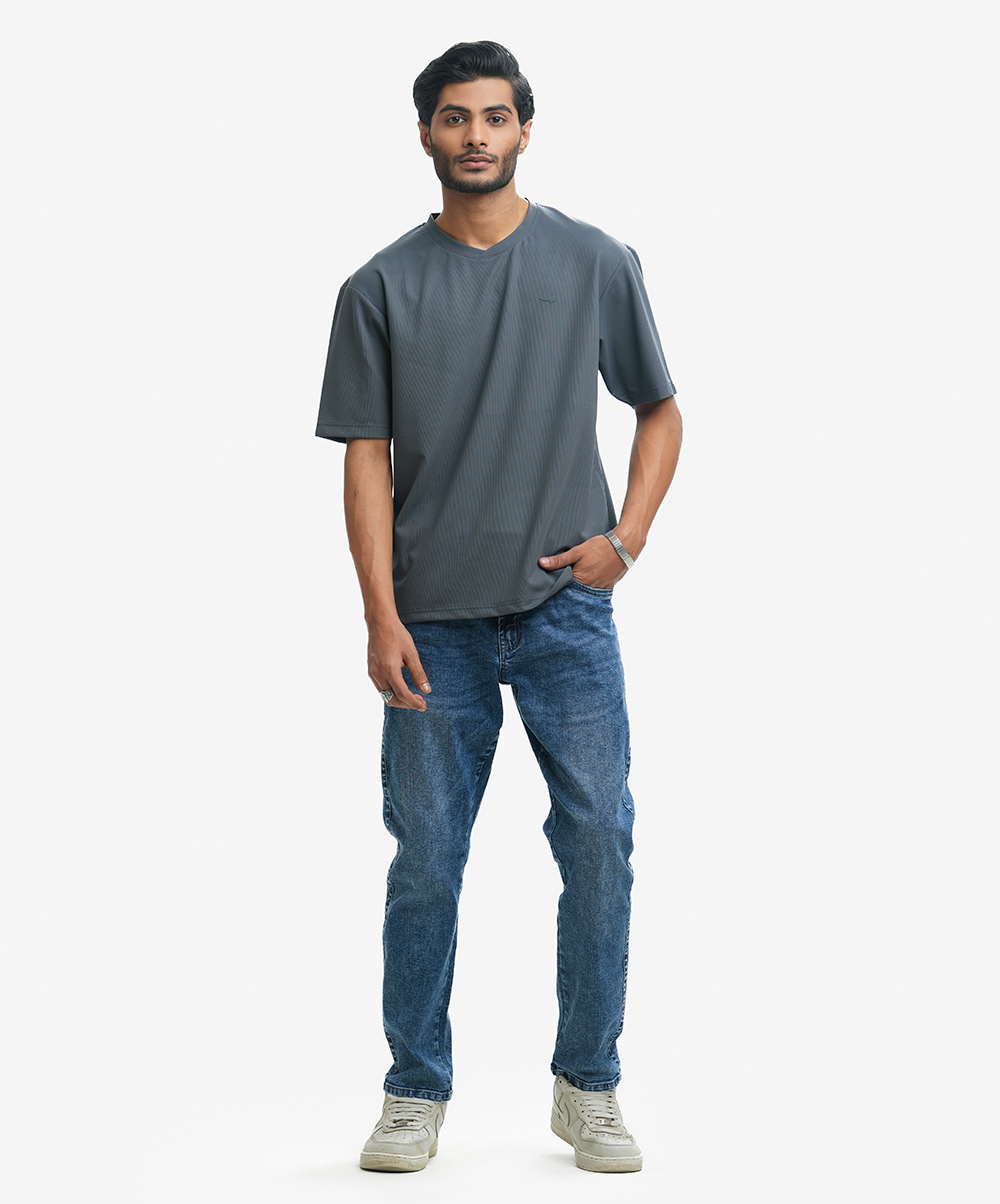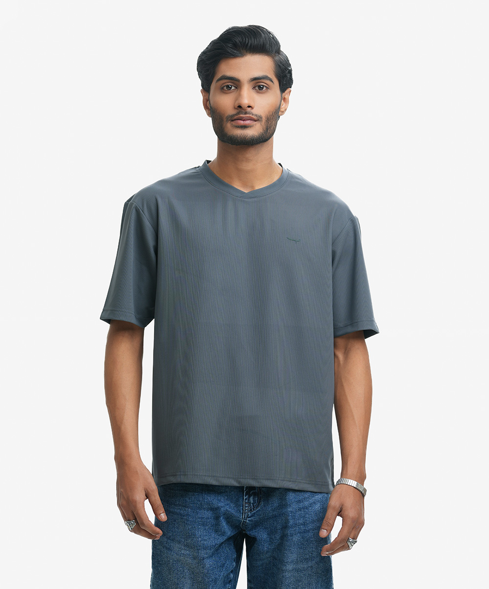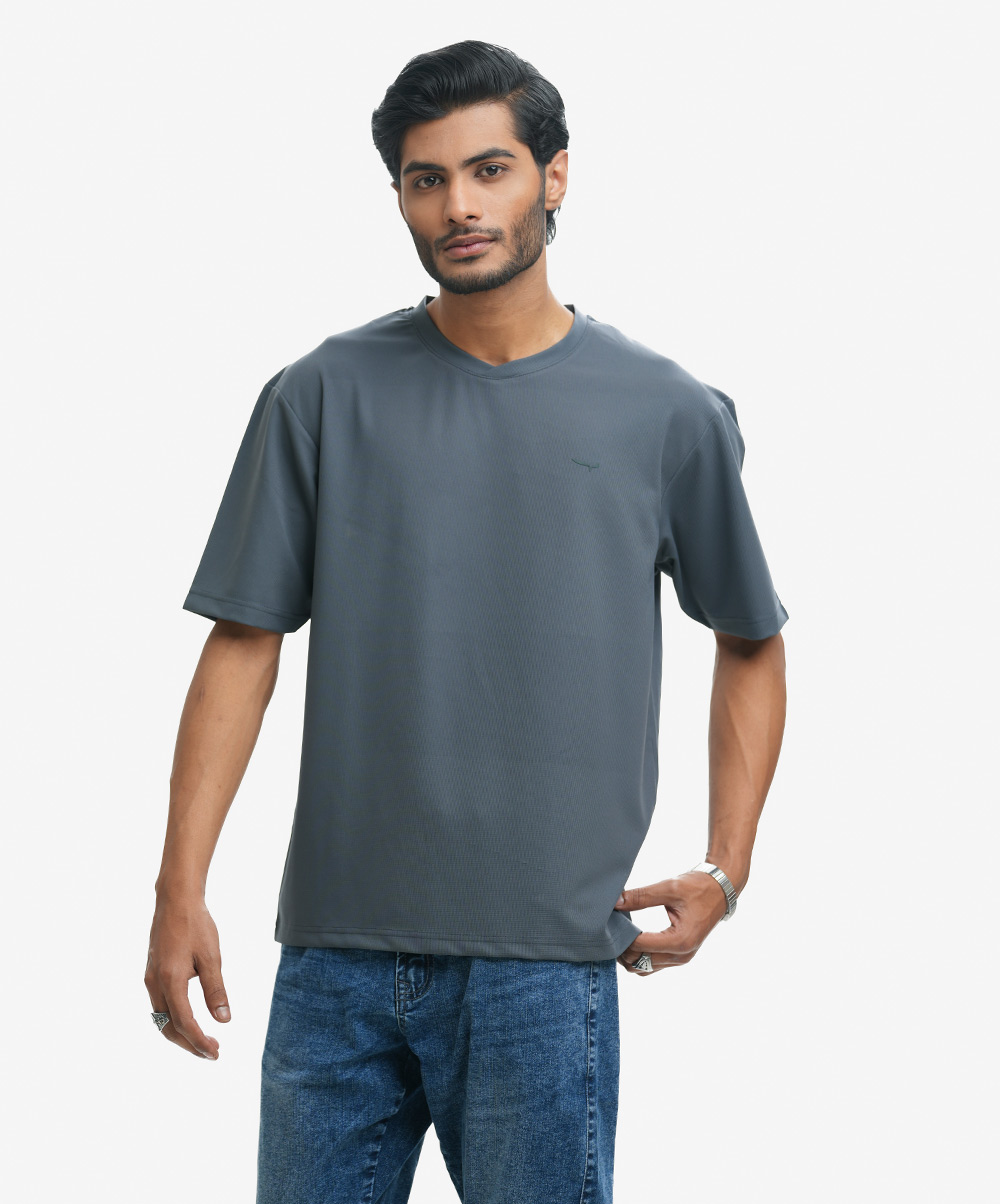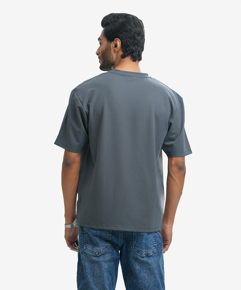 Men’s drop shoulder t-shirt in stretchable pique fabric. Round neck and short-sleeves.
