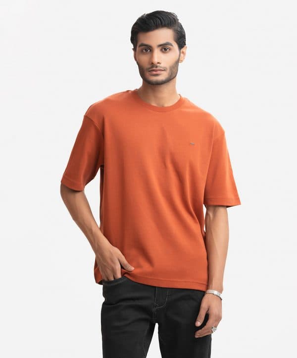 Men’s drop shoulder t-shirt in interlock knit fabric. Round ribbed neck and short-sleeves.