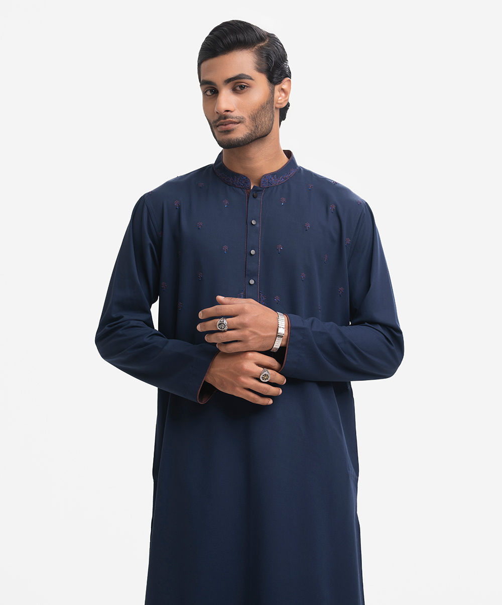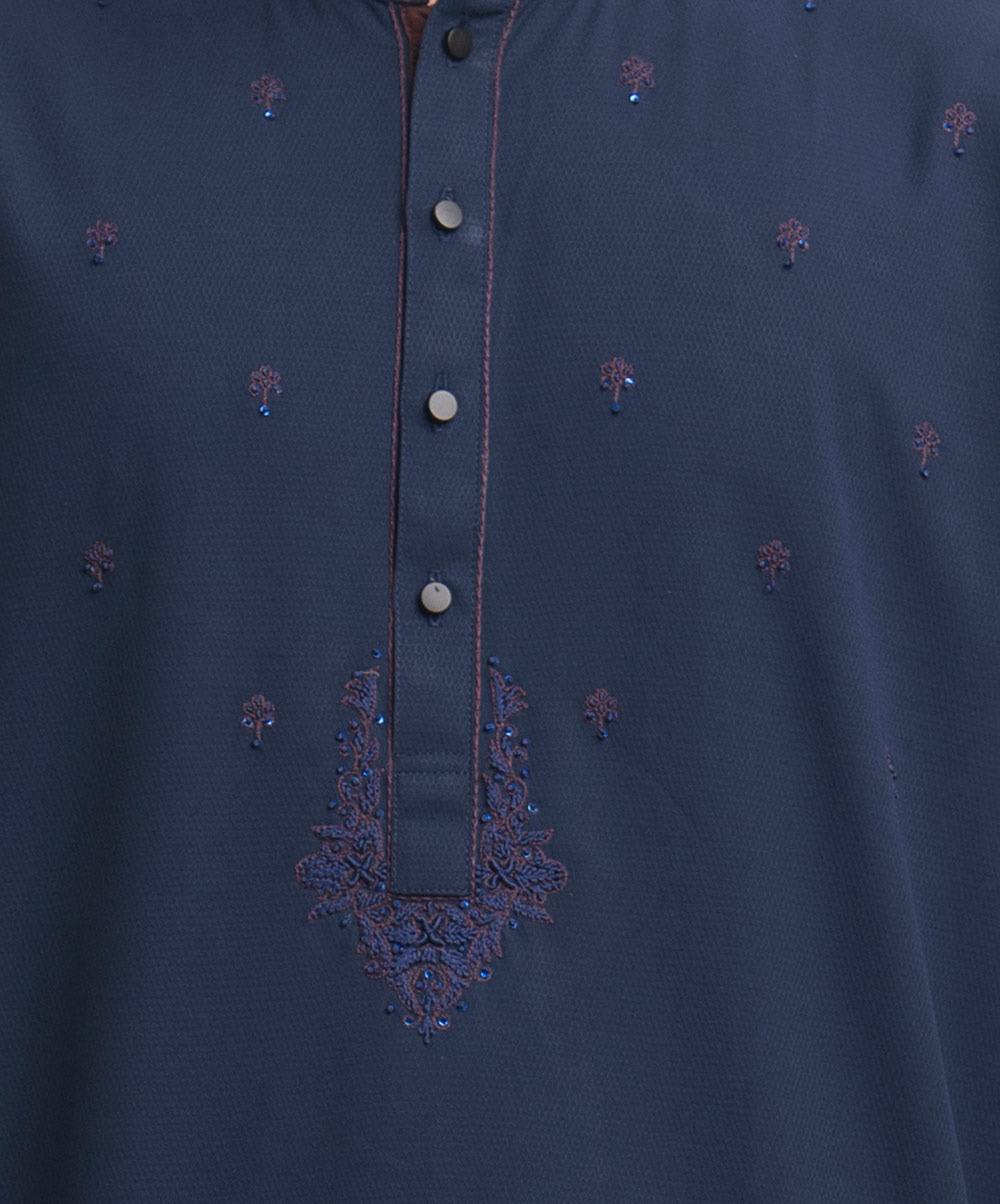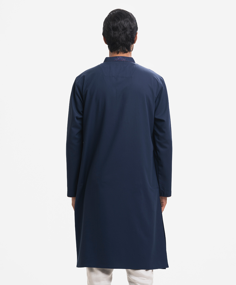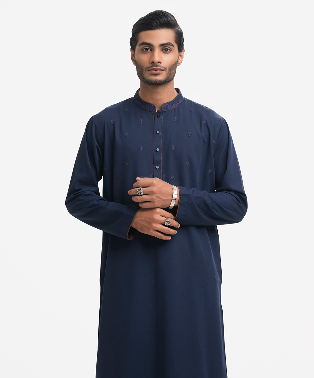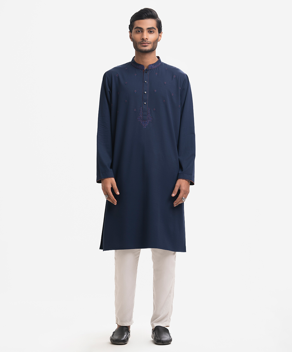 Men’s premium panjabi in jacquard fabric. Long sleeves, inseam side pockets. Karchupi on the collar and chest.