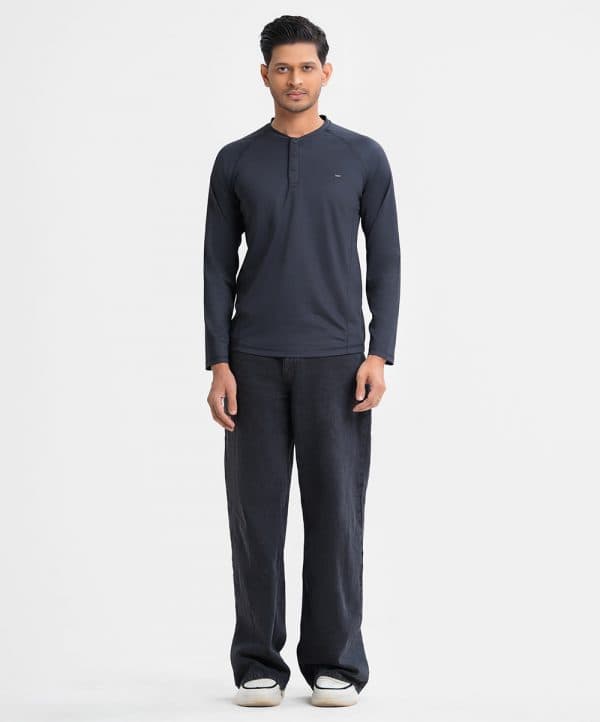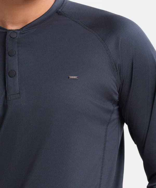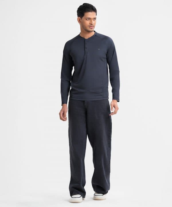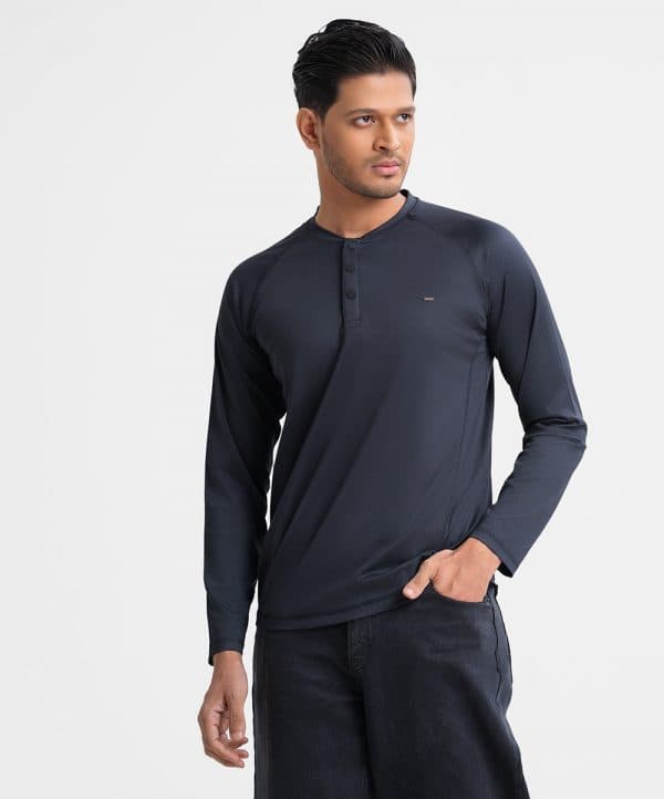 Men’s long sleeve hanley t-shirt in stretchable fabric with henley neck.