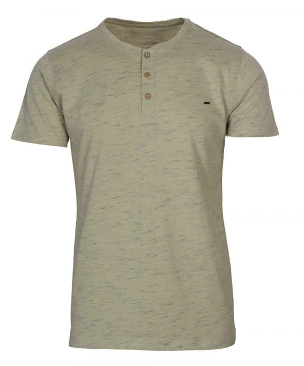 Pastel green slim-fit Henley T-shirt in cotton single jersey cotton. Round baseball neck collar with short sleeves.