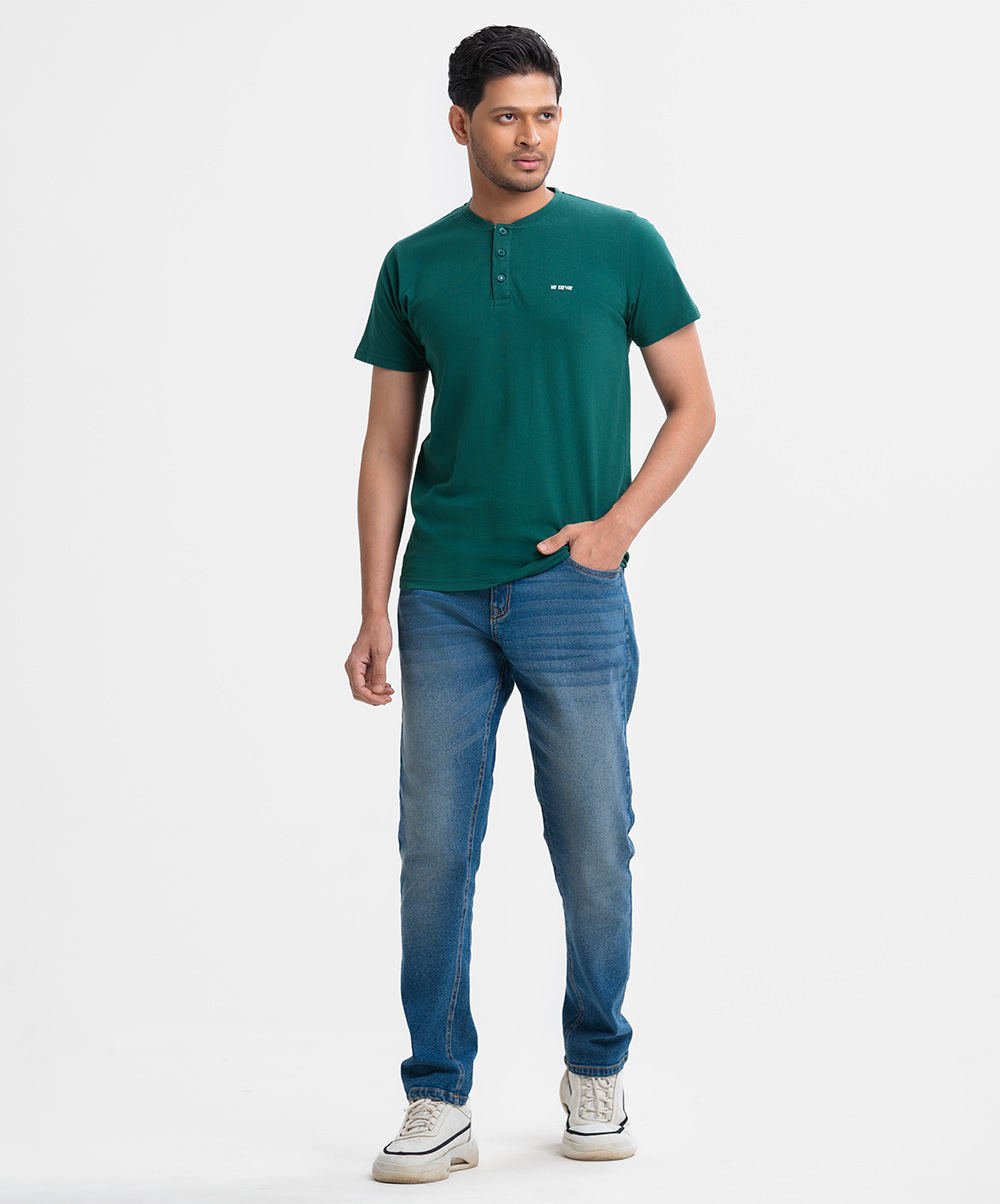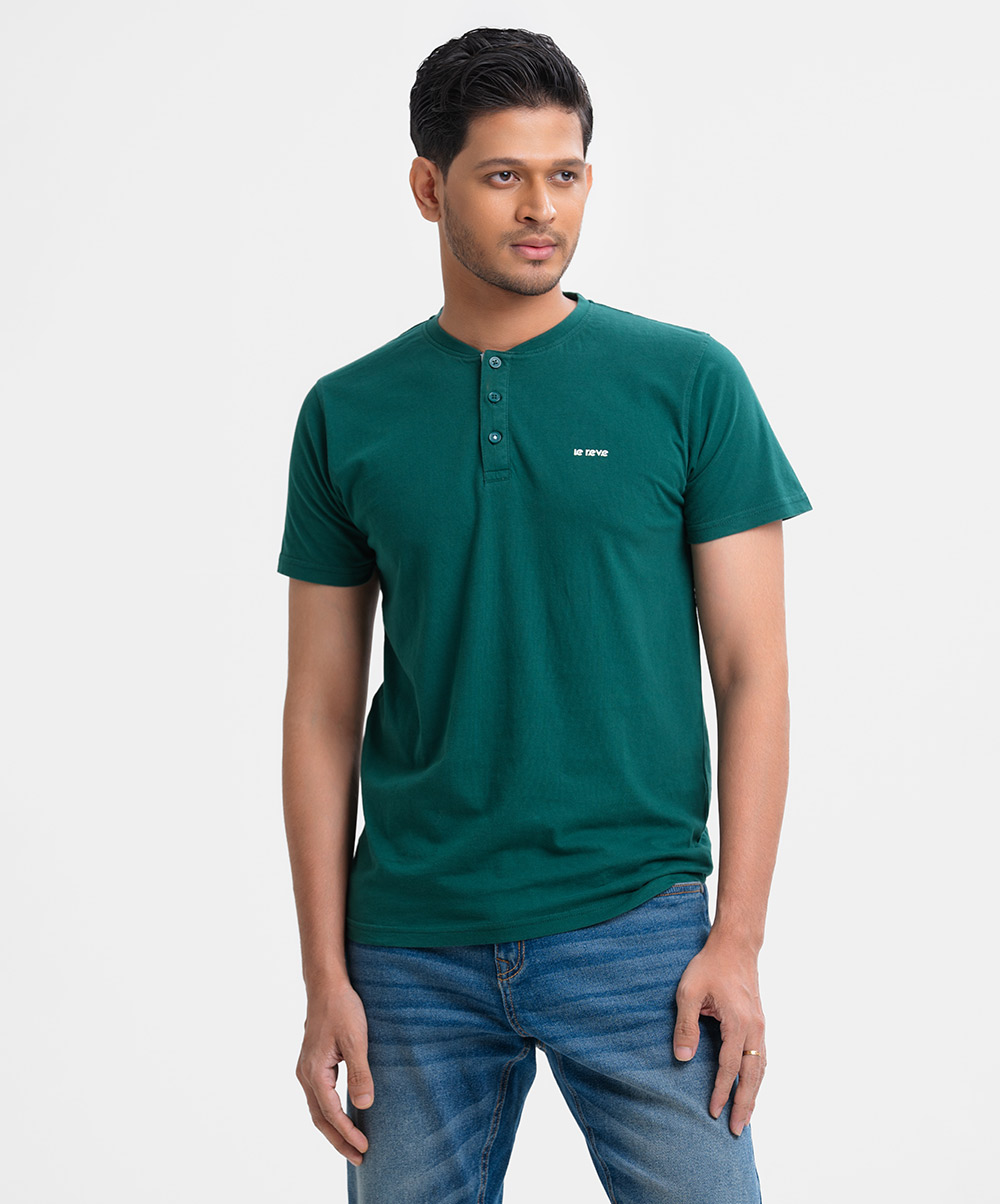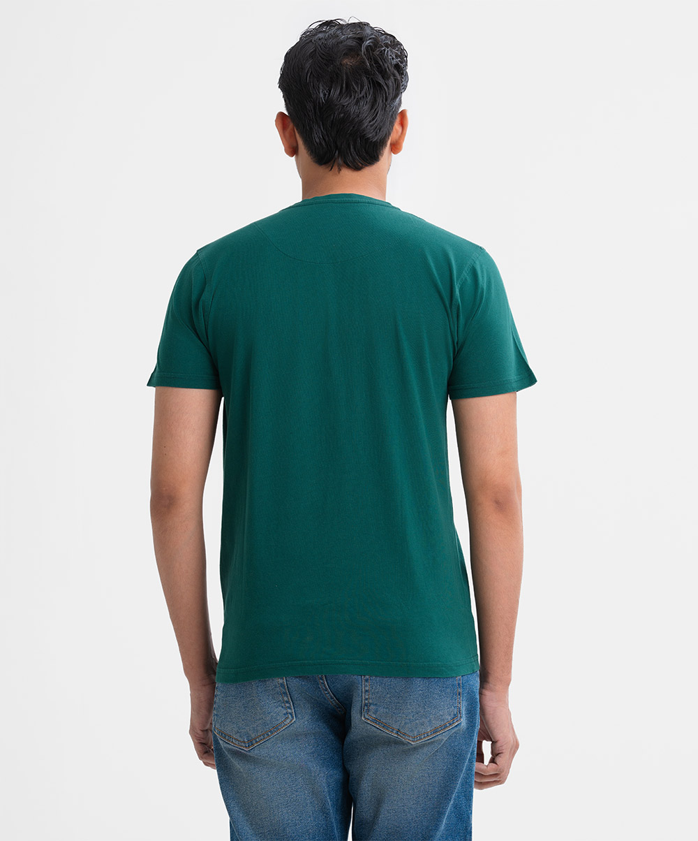 Men’s henley t-shirt in cotton single jersey knit fabric. Henley neck, short sleeves and print on the chest.
