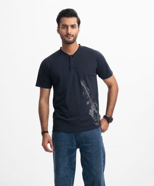 Navy Blue Interlock Henley T-shirt