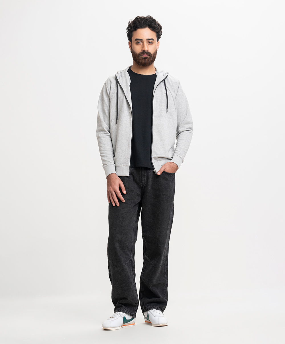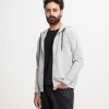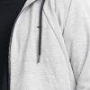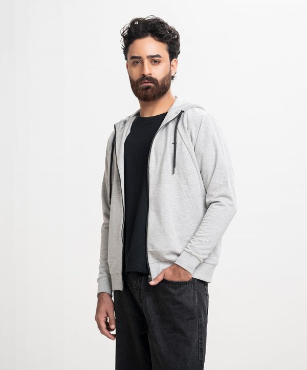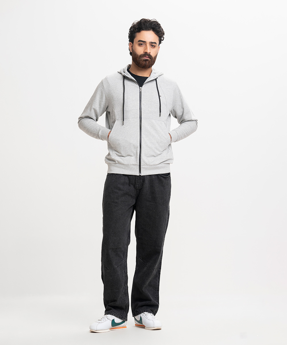 Men’s winter hoodie sweatshirt in cotton terry fabric. Zip-up, adjustable drawstring at hood, full sleeves. Typography print at front with kangaroo pockets.
