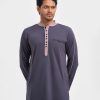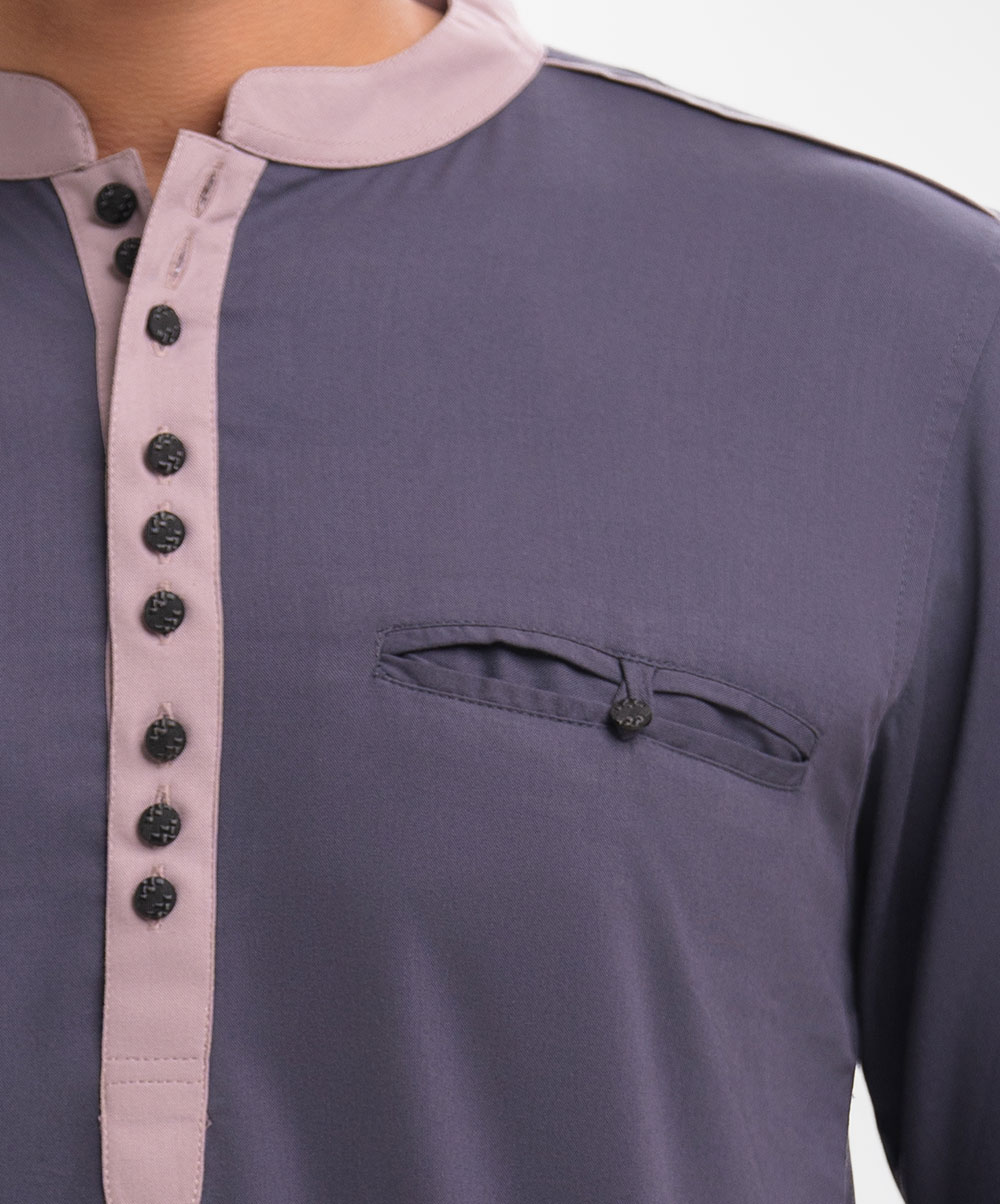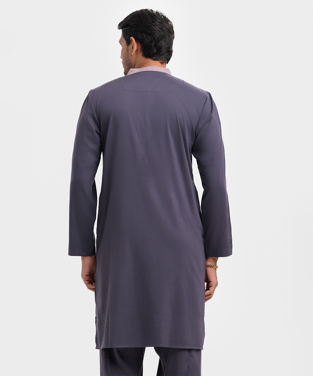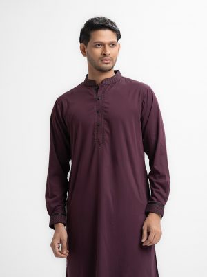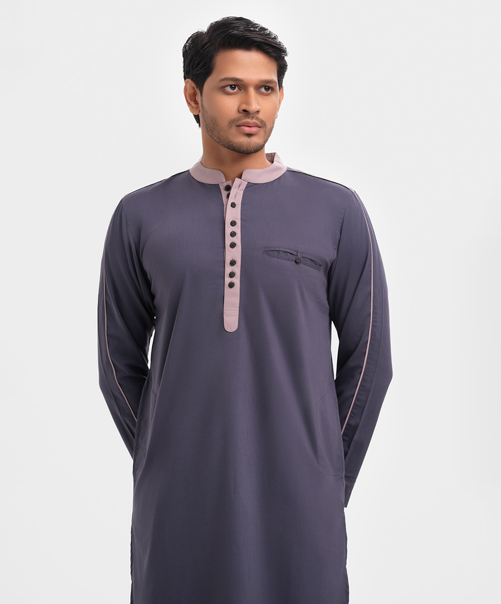 Comfortable and trendy kabli panjabi and pajama set. Matching patch attached on the collar and placket. Single button pocket on the chest.