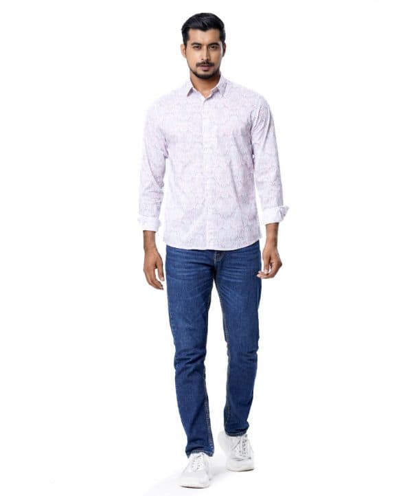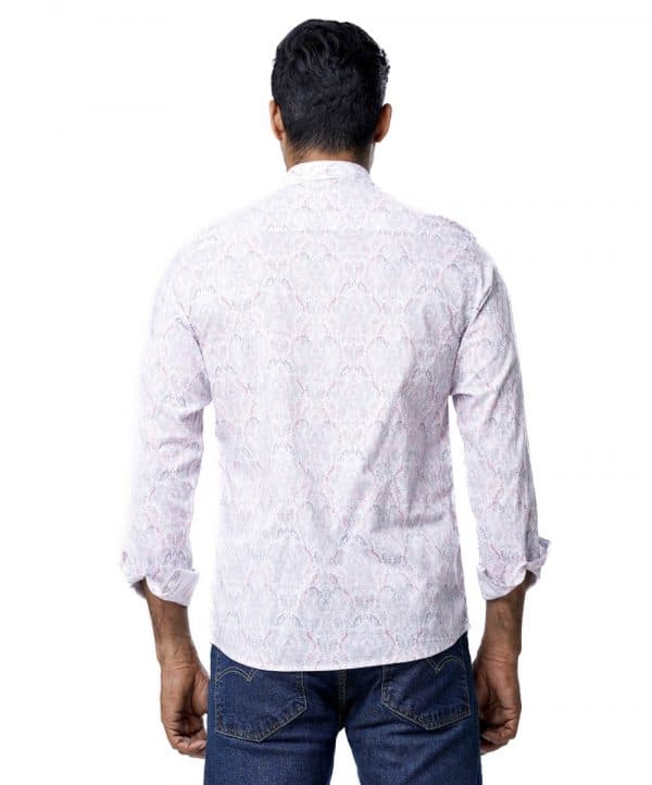 White casual shirt in printed Cotton fabric. Designed with a classic collar and long-sleeved with adjustable buttons at cuffs.