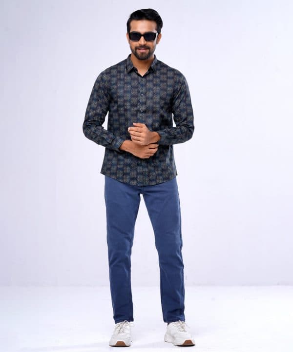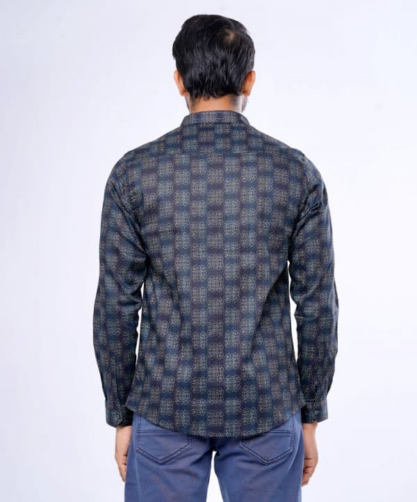 Black shirt in printed Cotton fabric. Designed with a classic collar and long-sleeved with adjustable button at cuffs. Slim fit.