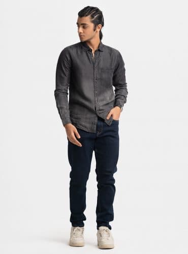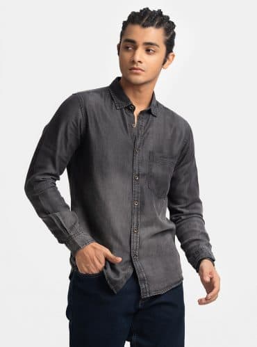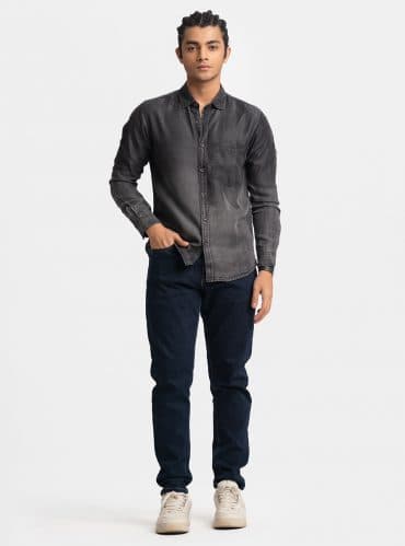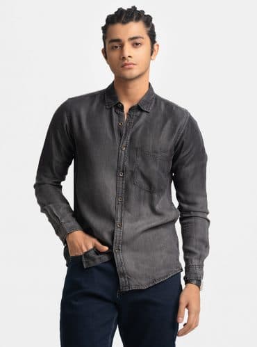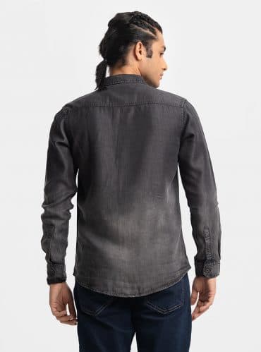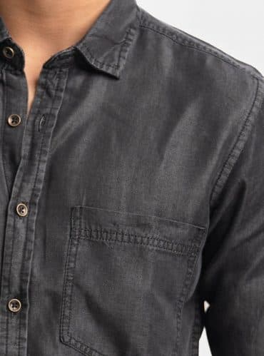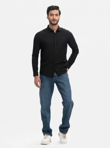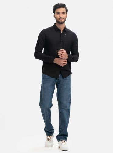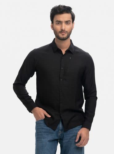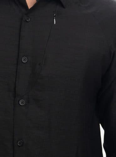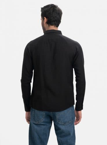 Black shirt in printed Cotton fabric. Designed with a classic collar and long-sleeved with adjustable button at cuffs. Slim fit.