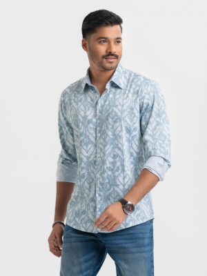 White printed Long Sleeve Casual Shirt in Cotton fabric.