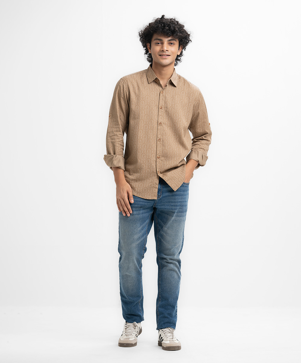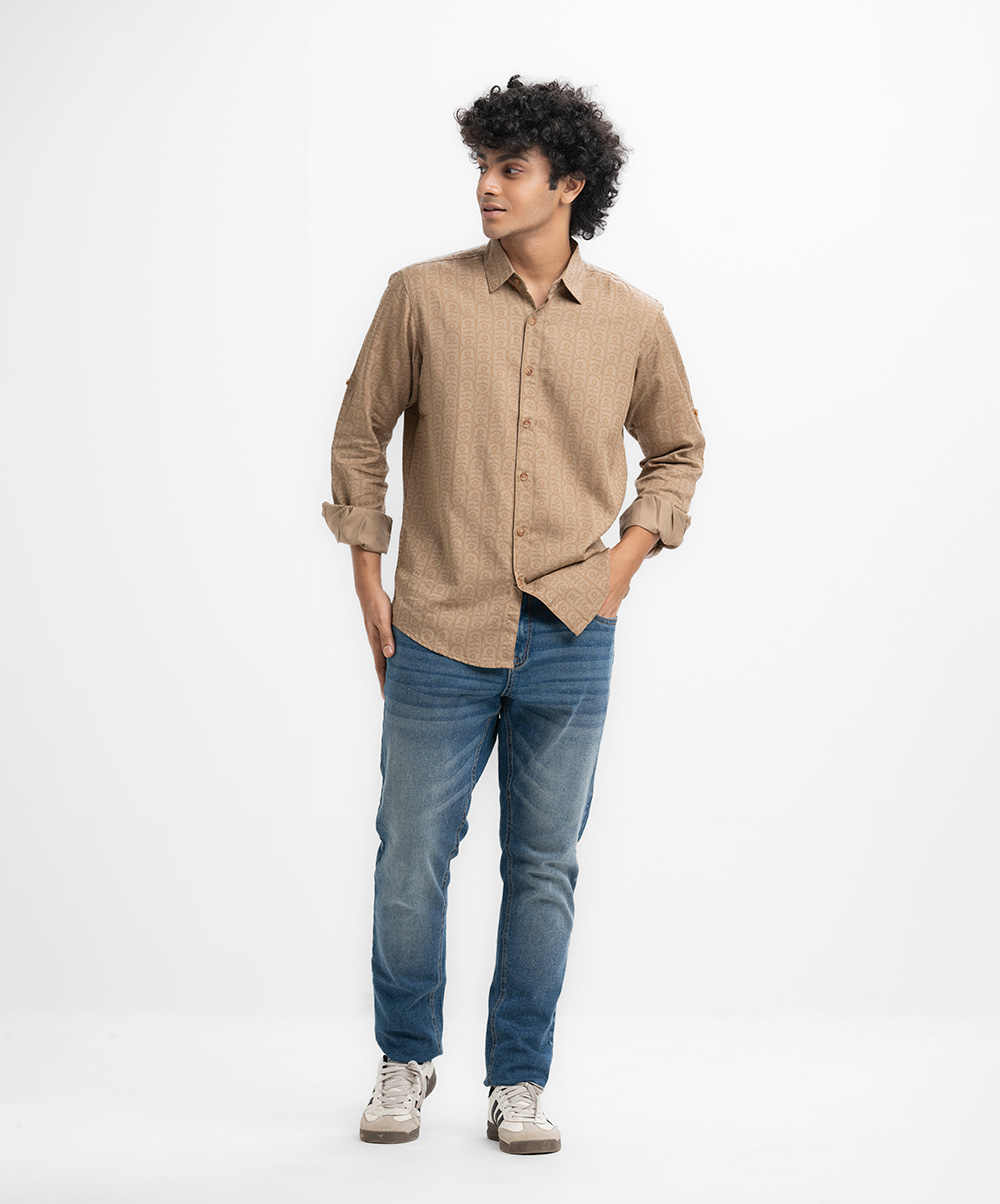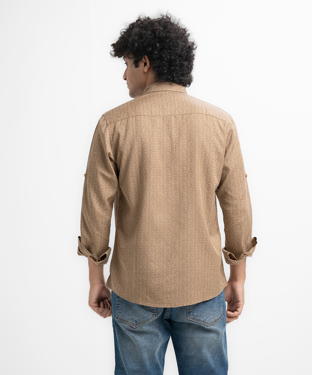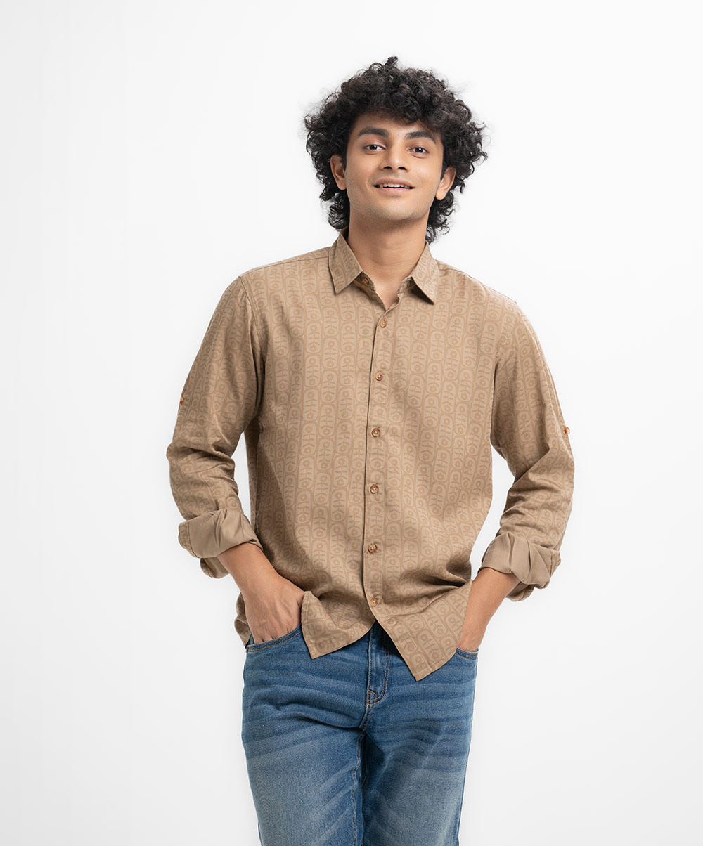 Brown Cotton Long Sleeve Casual Shirt
