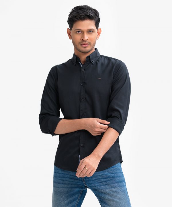Black Cotton Long Sleeve Casual Shirt