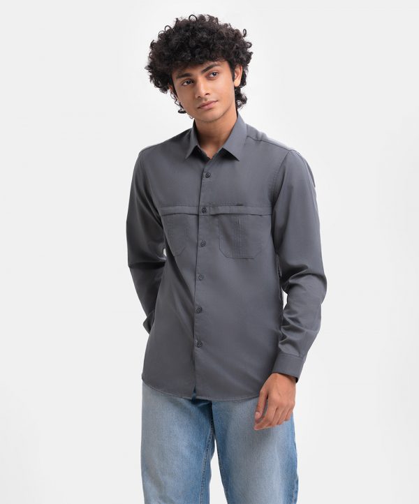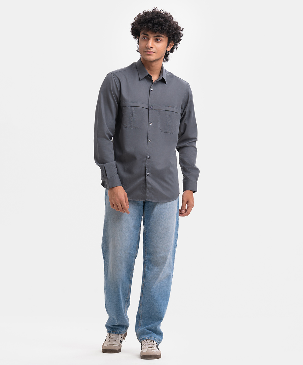 Ash Blended Long Sleeve Casual Shirt