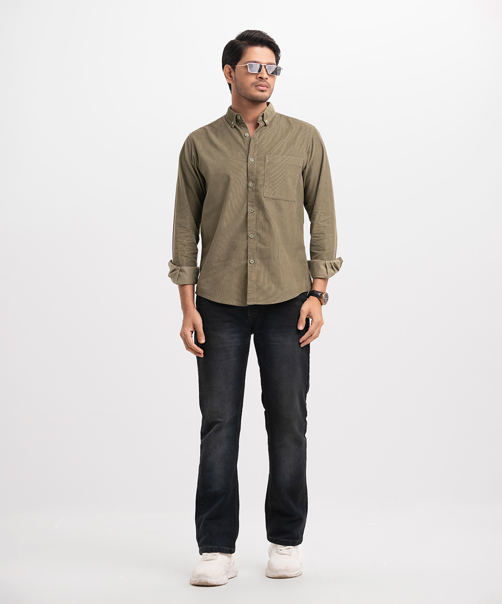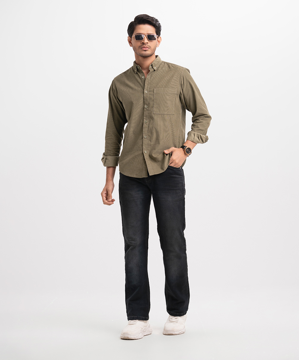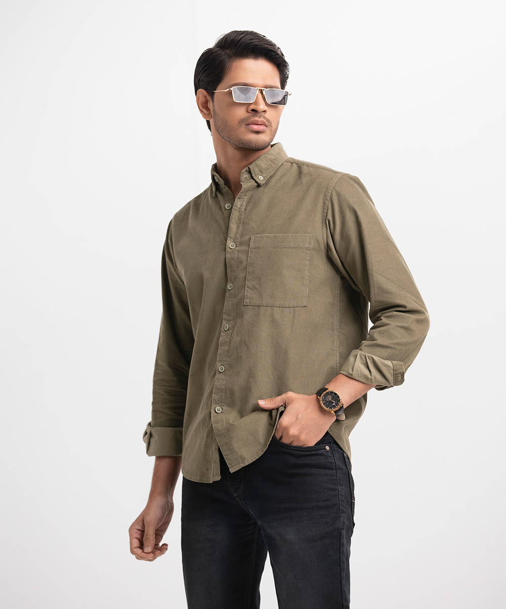 Men’s single color casual shirt in cotton twill fabric. Classic collar, full sleeves and a front pocket.