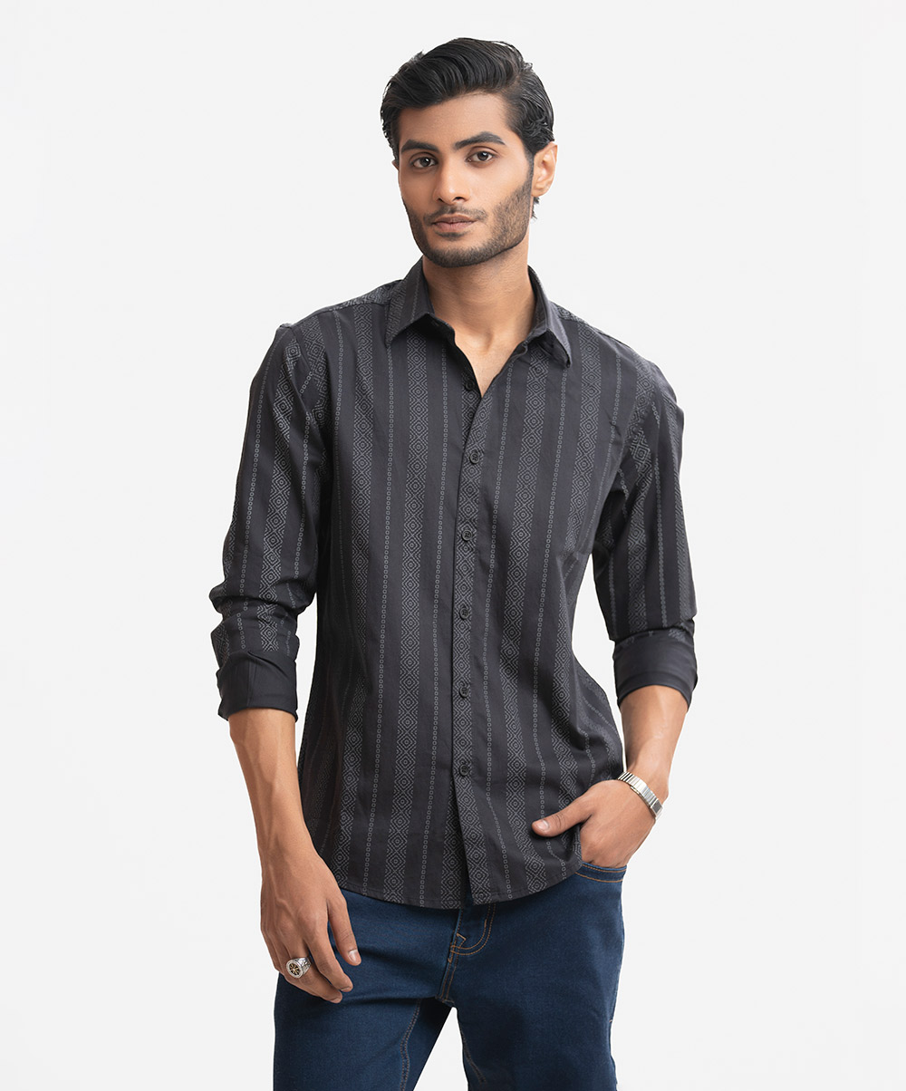 Men’s printed casual shirt in cotton fabric. Classic collar and full-sleeve with adjustable buttons cuff.