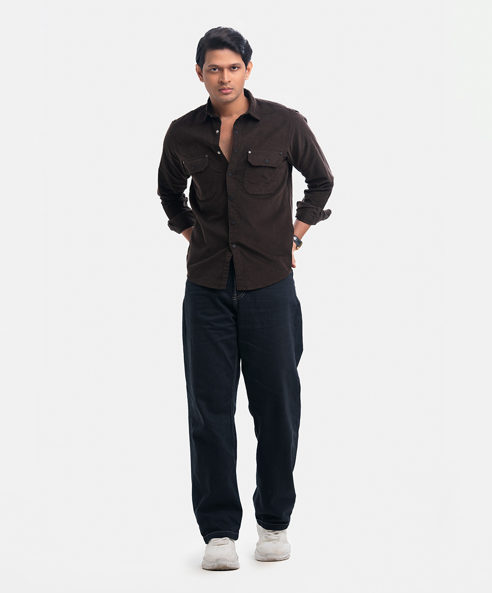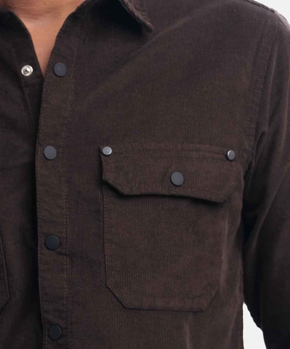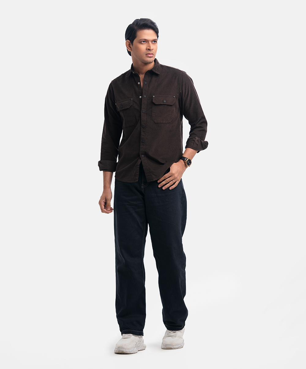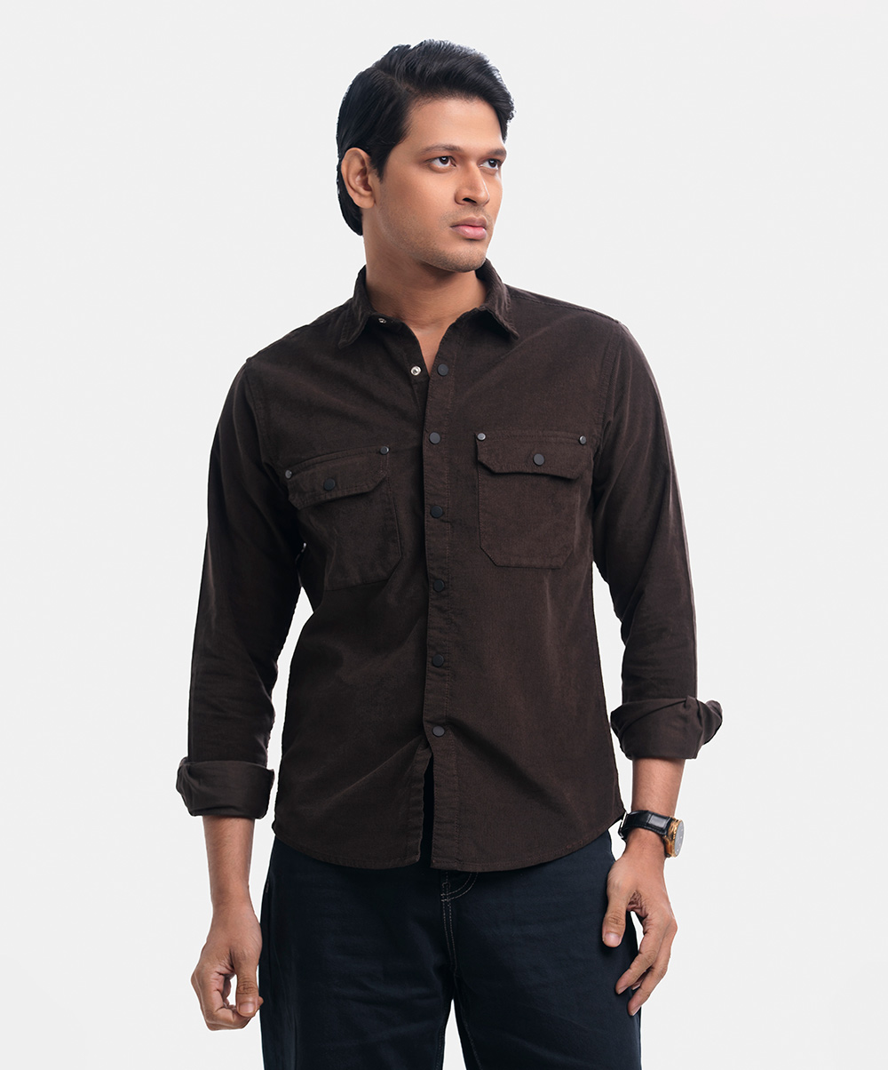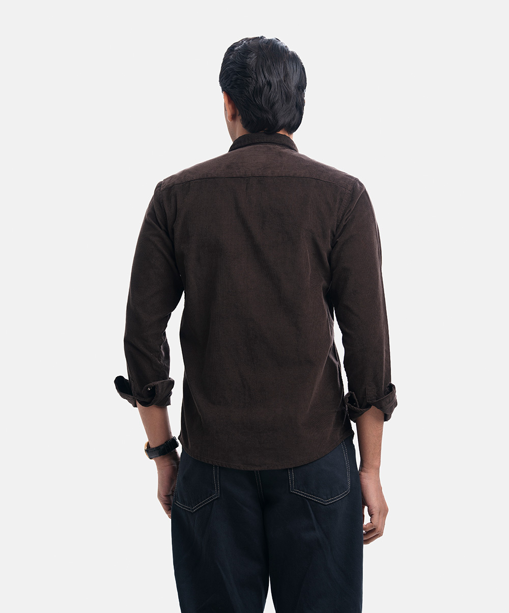 Men’s single color casual shirt in cotton corduroy fabric. Classic collar, full sleeves and two front pockets.