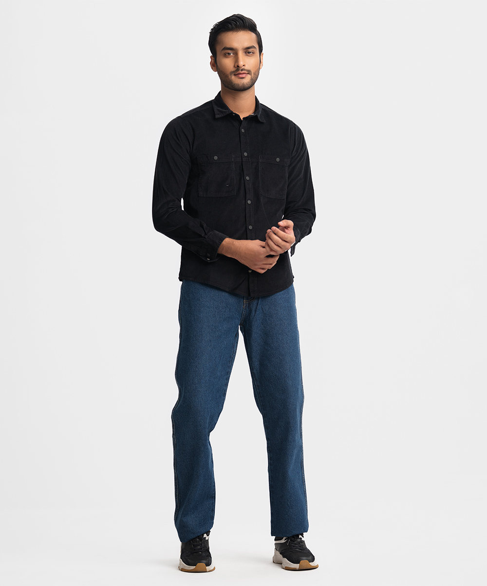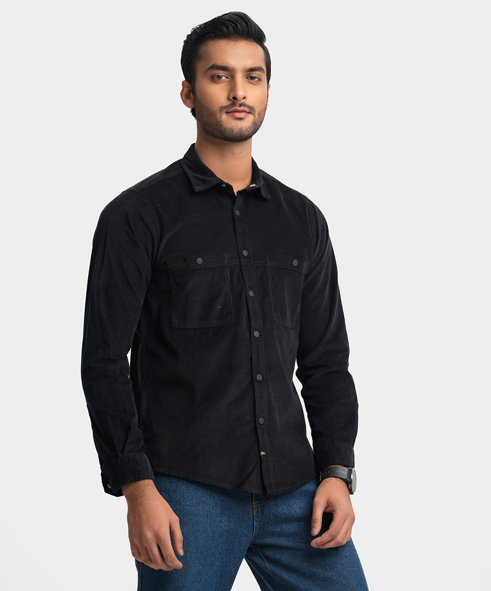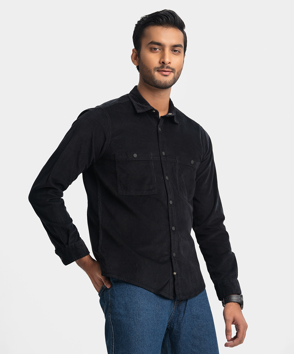 Men’s single color casual shirt in cotton corduroy fabric. Classic collar, full sleeves and two front pockets.