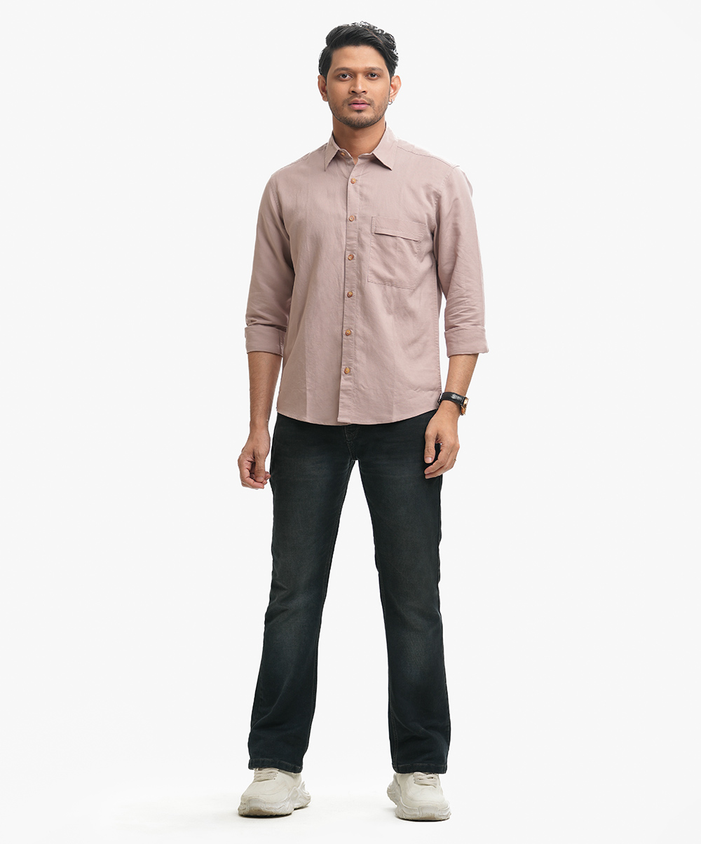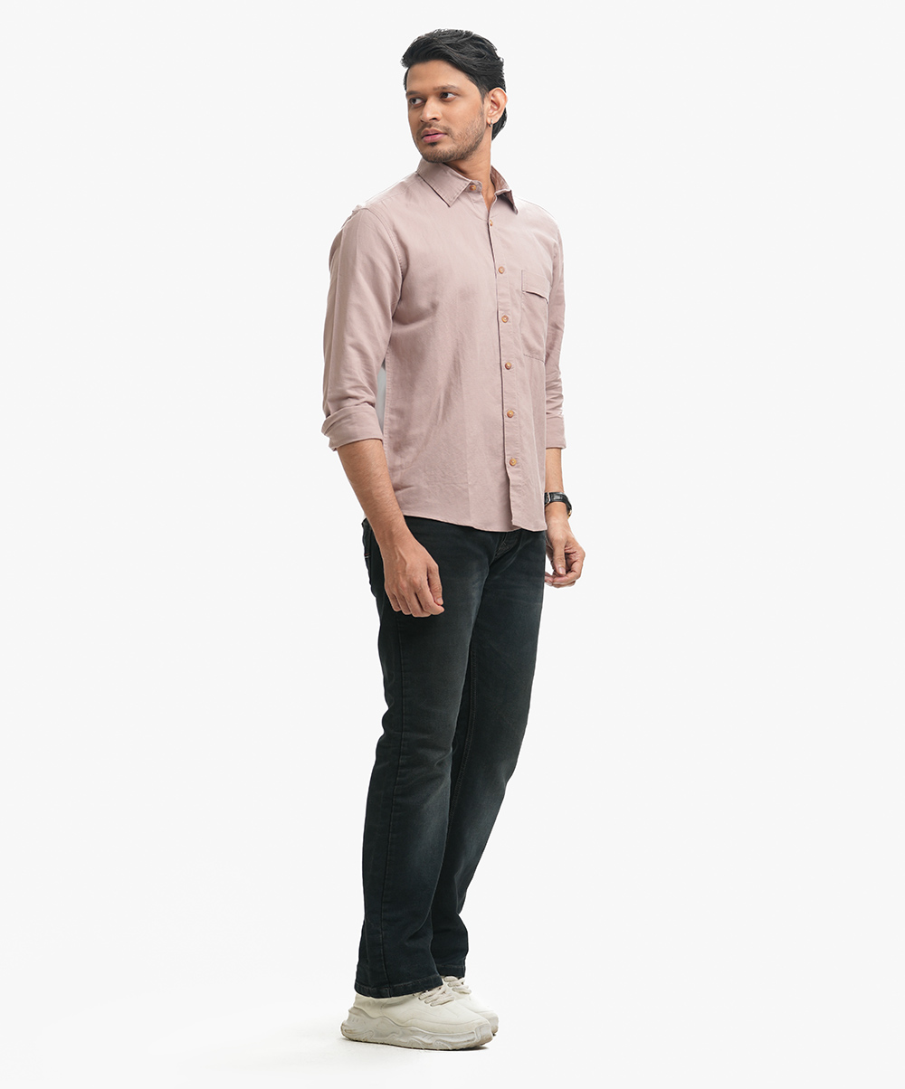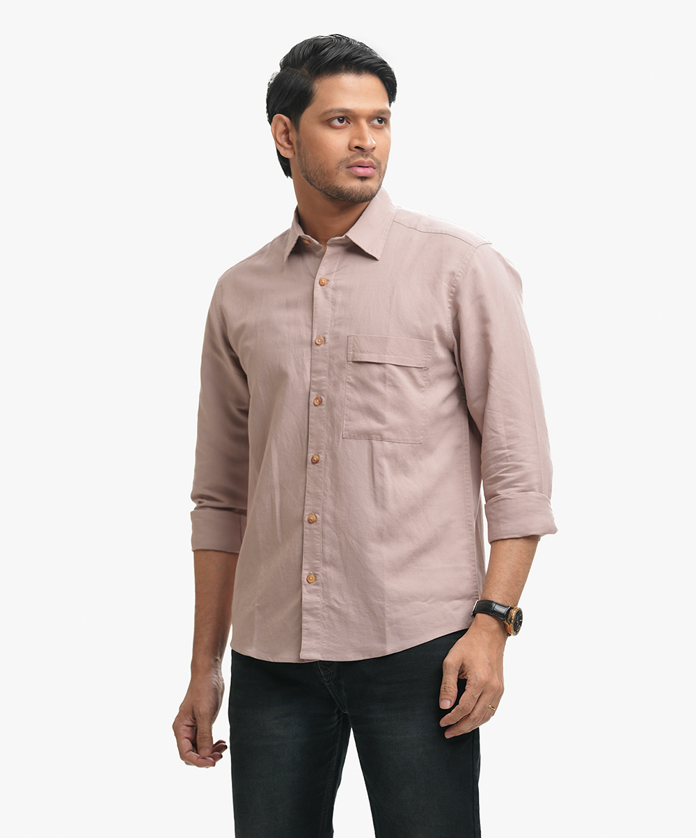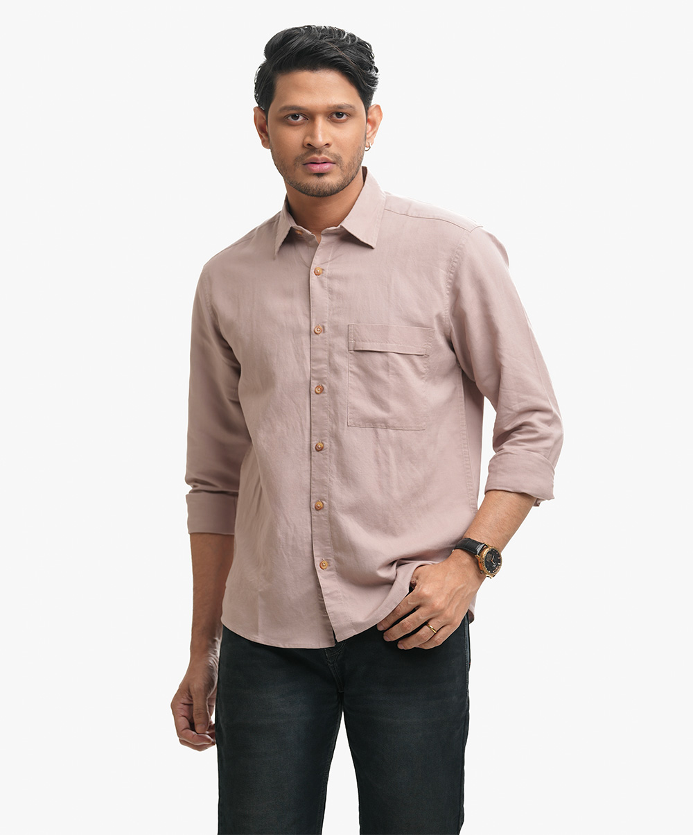 Cotton long-sleeved casual shirt with a classic collar and a chest pocket.