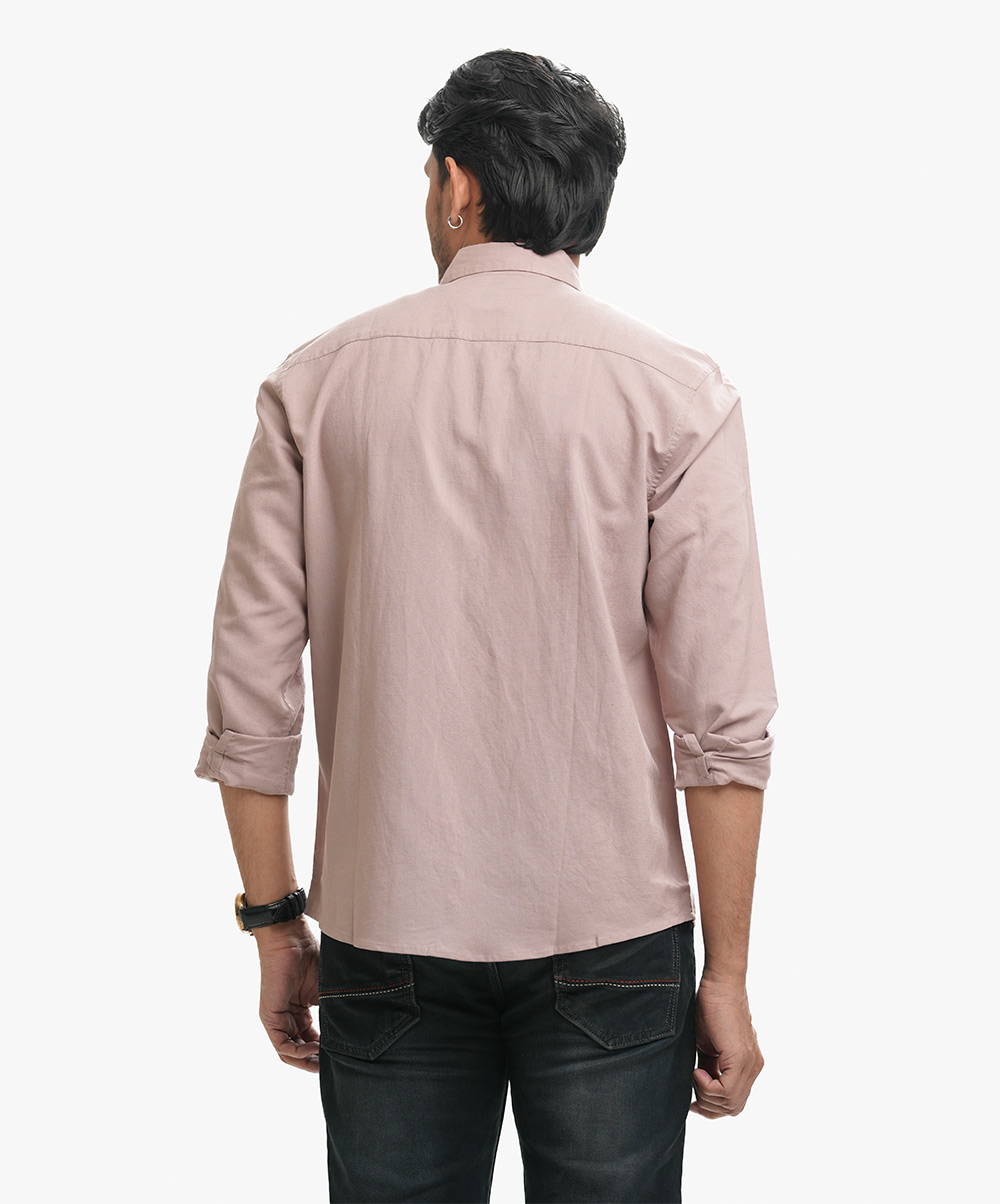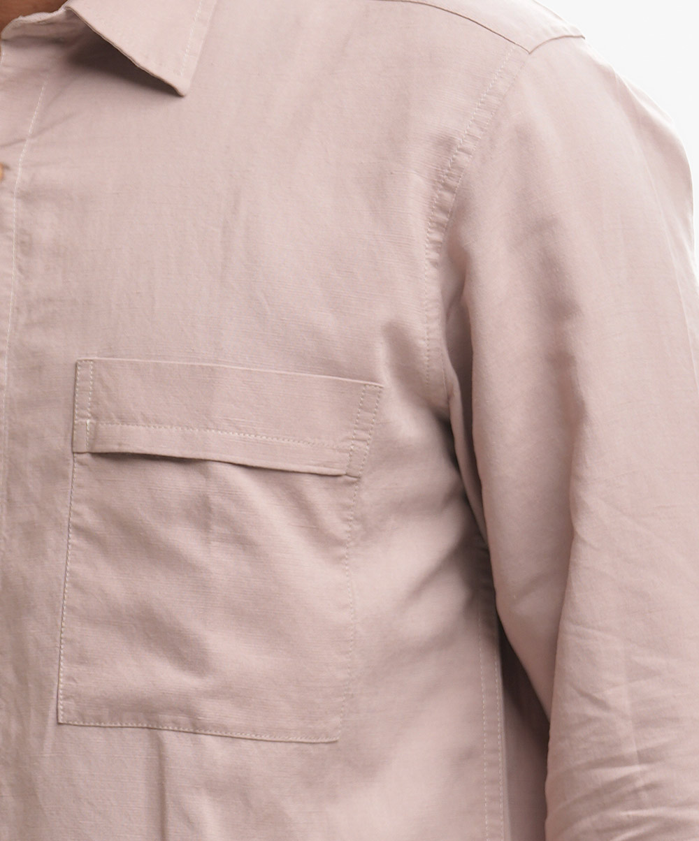Beige Pink Cotton Long Sleeve Casual Shirt