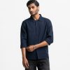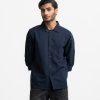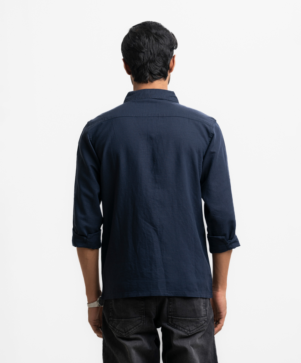 Blue Cotton-blend Long Sleeve Casual Shirt