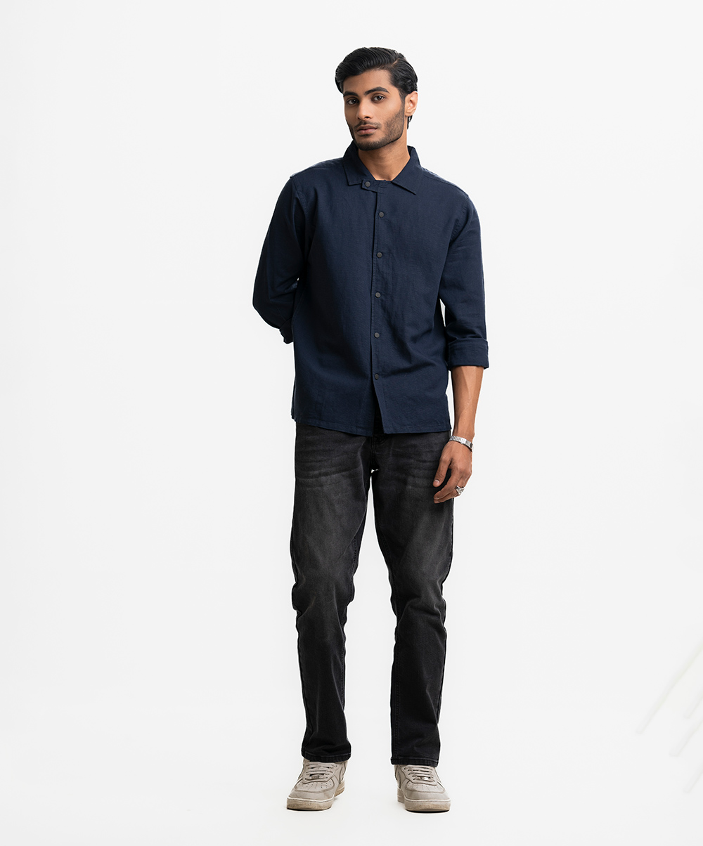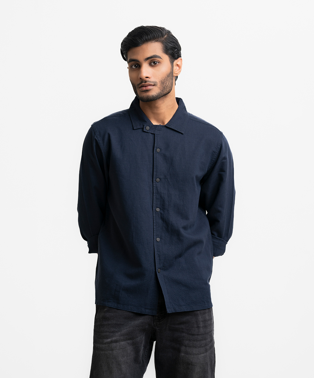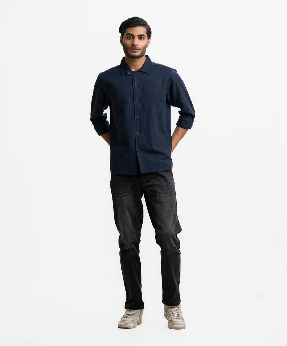 Long-sleeve casual shirt in blended cotton fabric. Classic collar, button up front and adjustable cuffs.