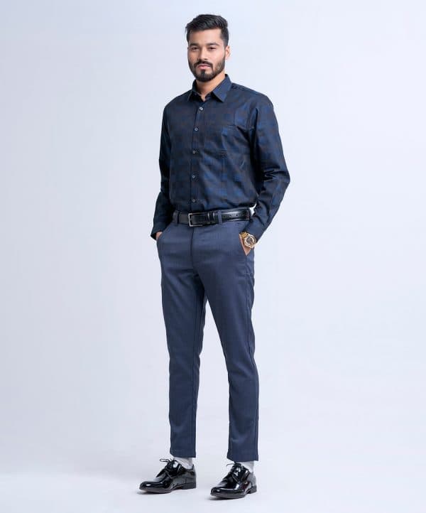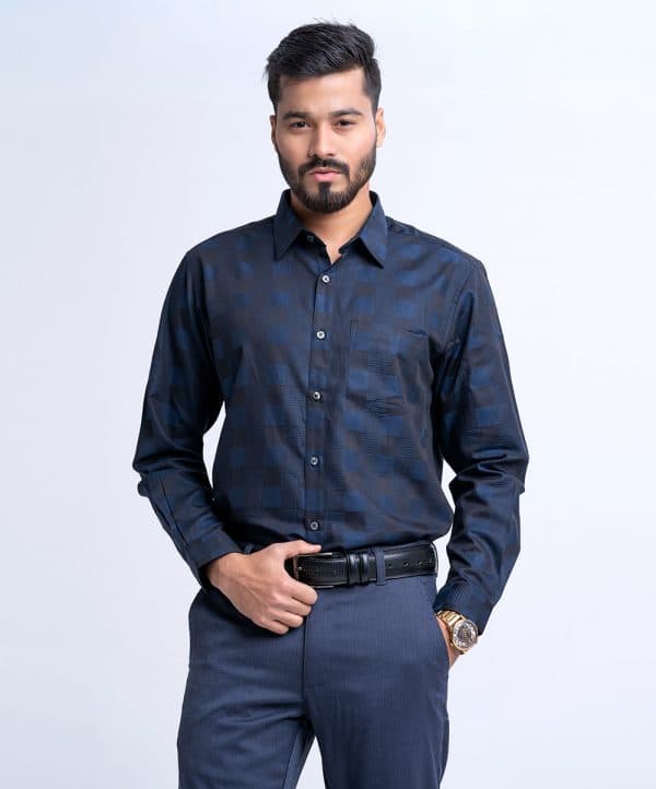 Blue check formal Shirt in premium-quality Cotton fabric. Designed with a classic collar and long-sleeved with adjustable buttons at cuffs. Slim fit.