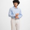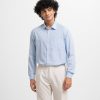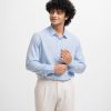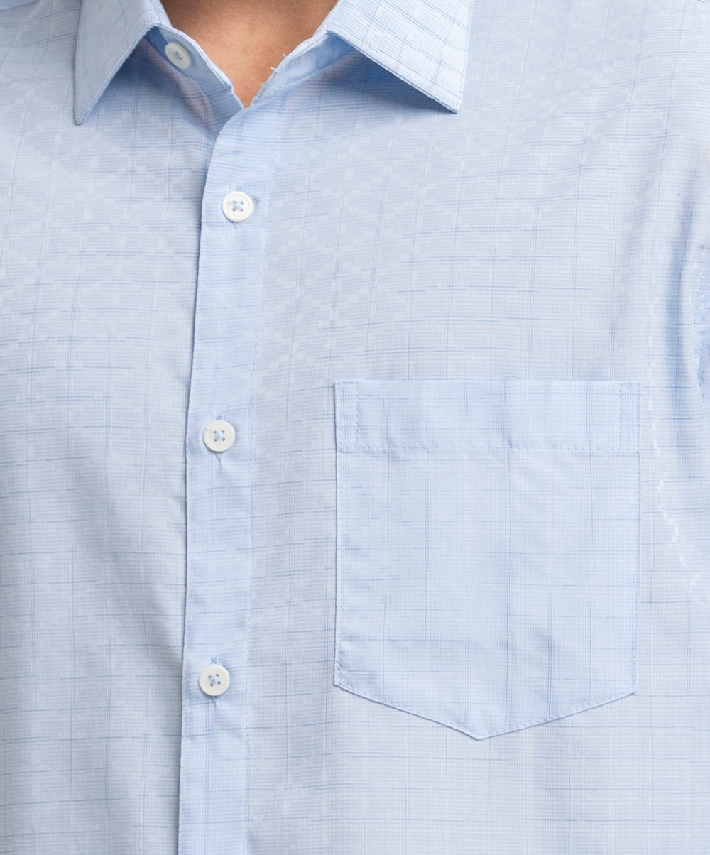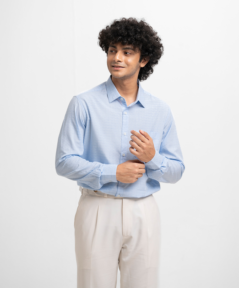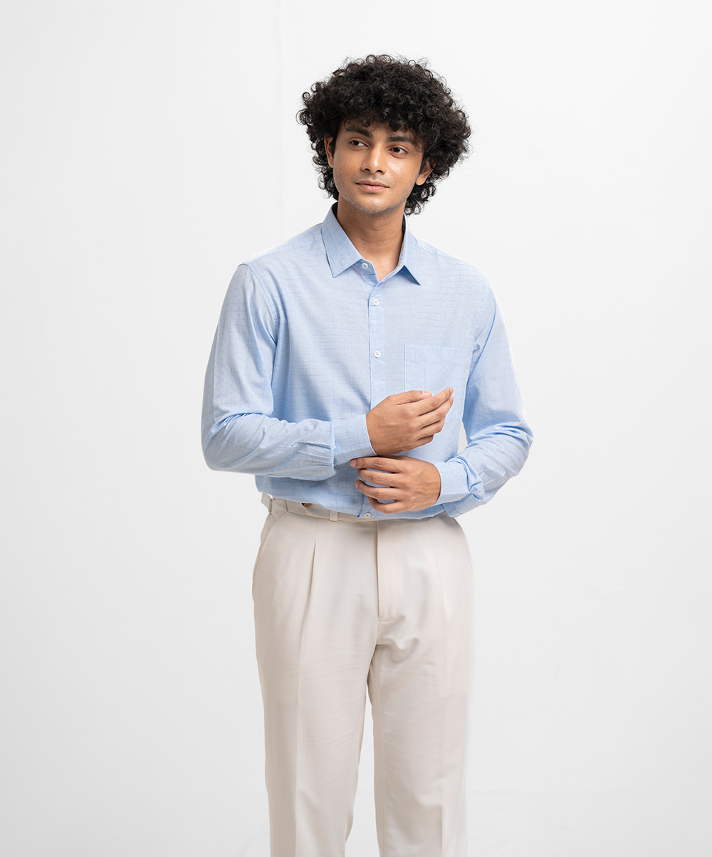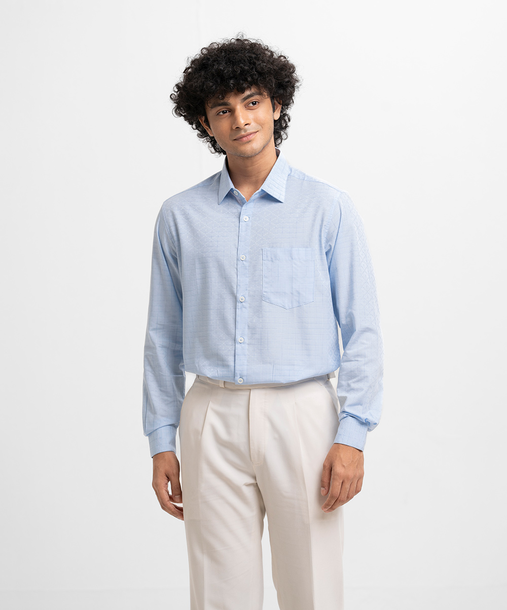 Long-sleeved formal shirt in blended cotton fabric. Classic collar with a chest pocket.