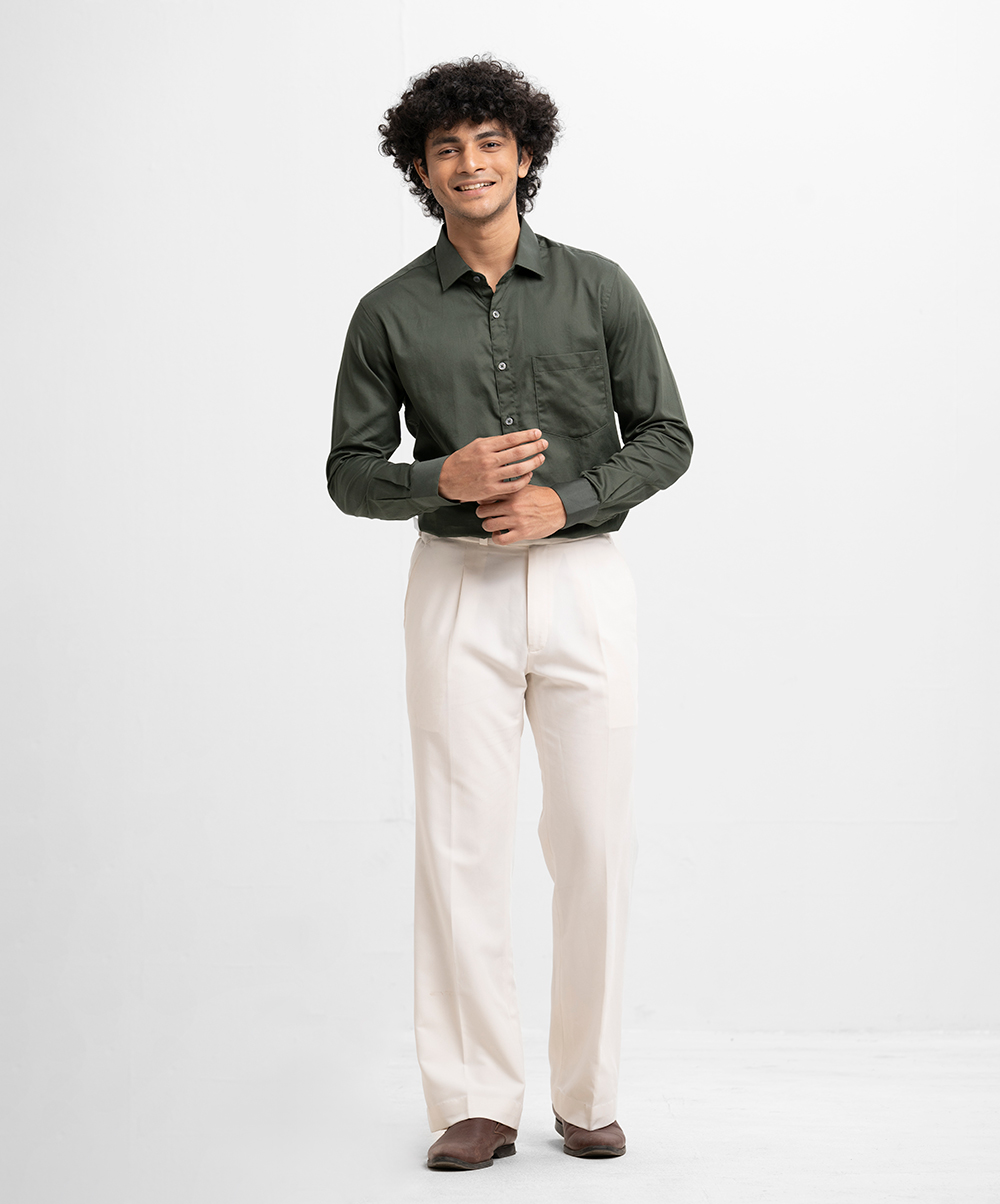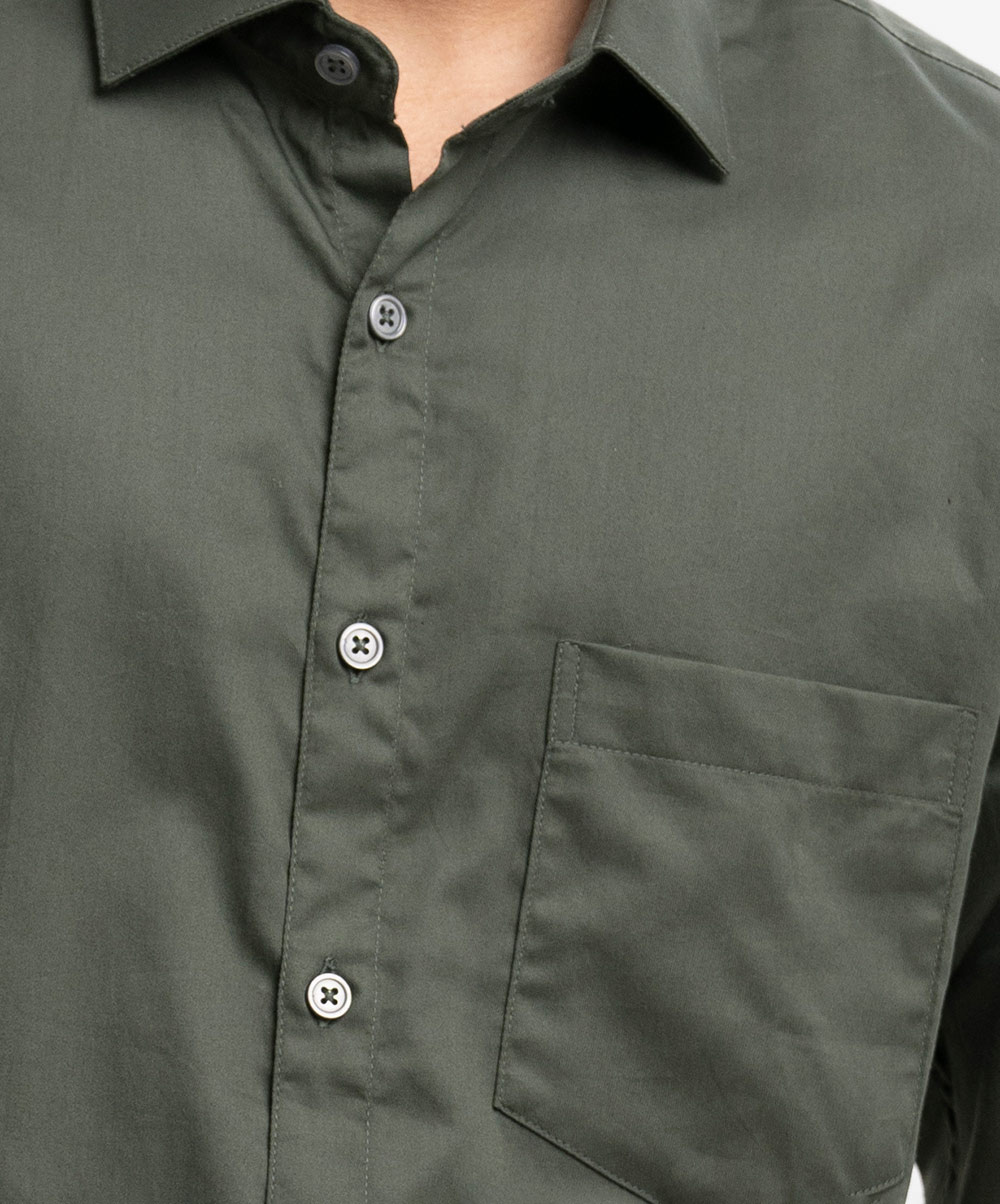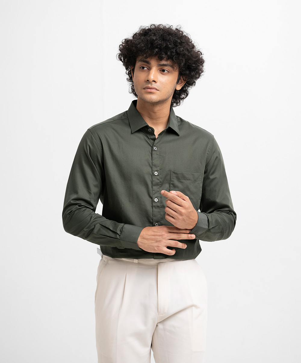 Green Cotton Long Sleeve Formal Shirt