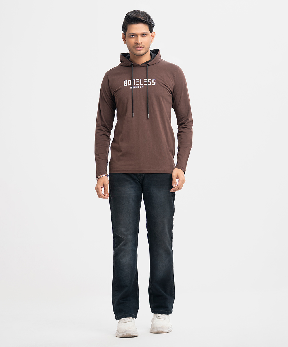 Coffee Cotton Long Sleeve Hoodie T-Shirt