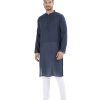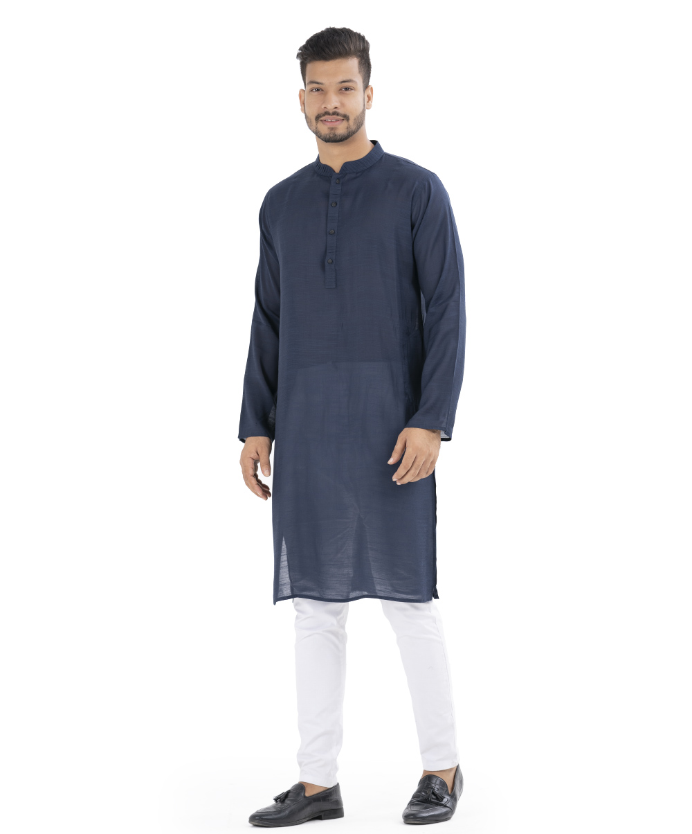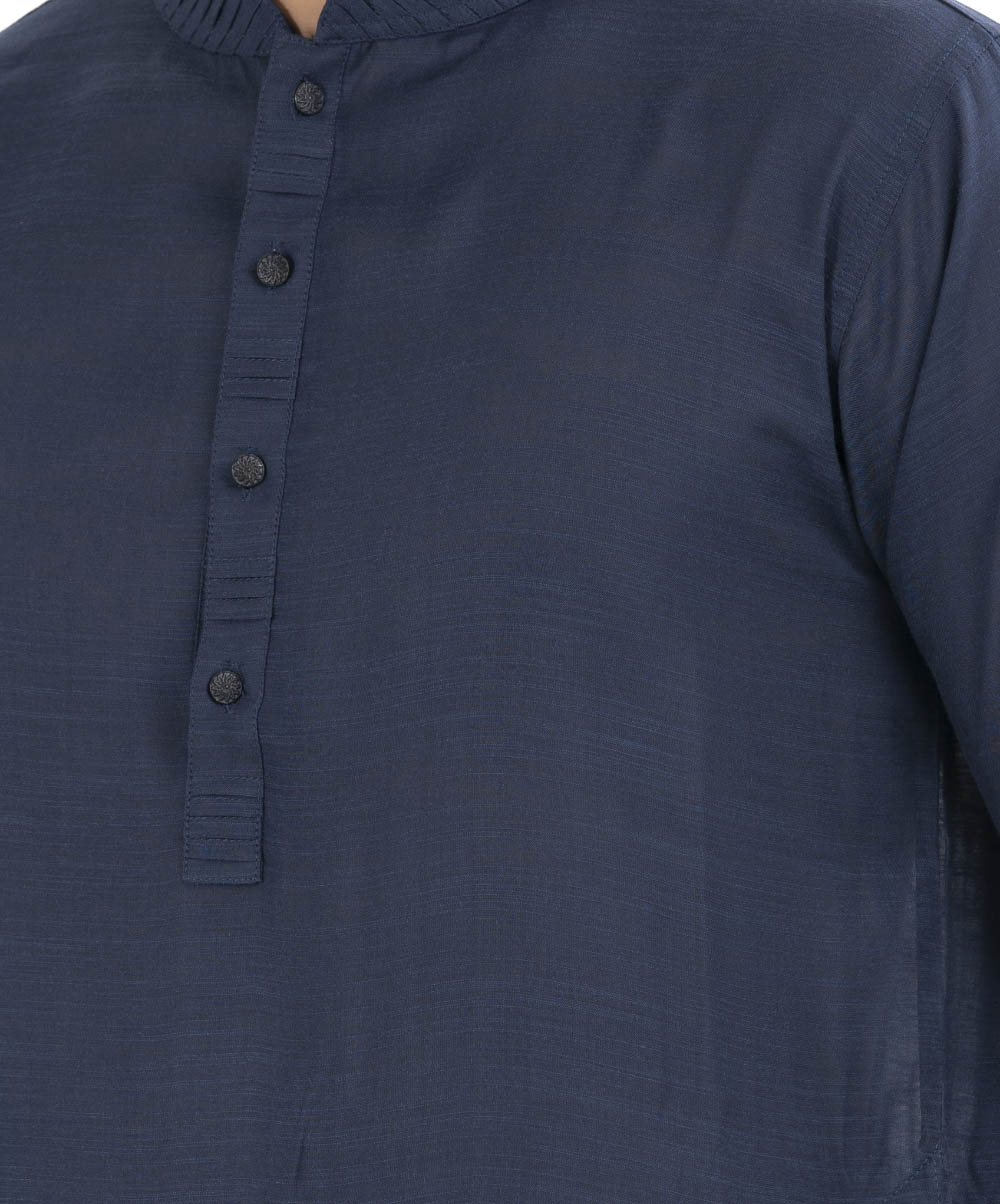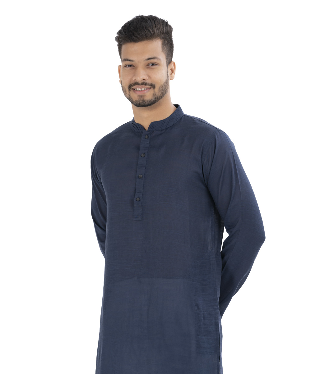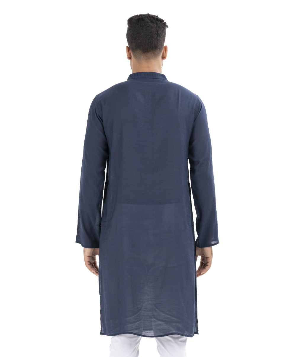 Blue Panjabi in Cotton fabric with a pleat on the collar placket.