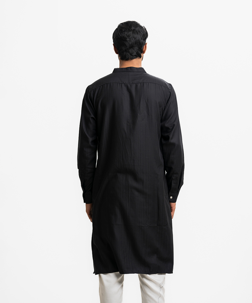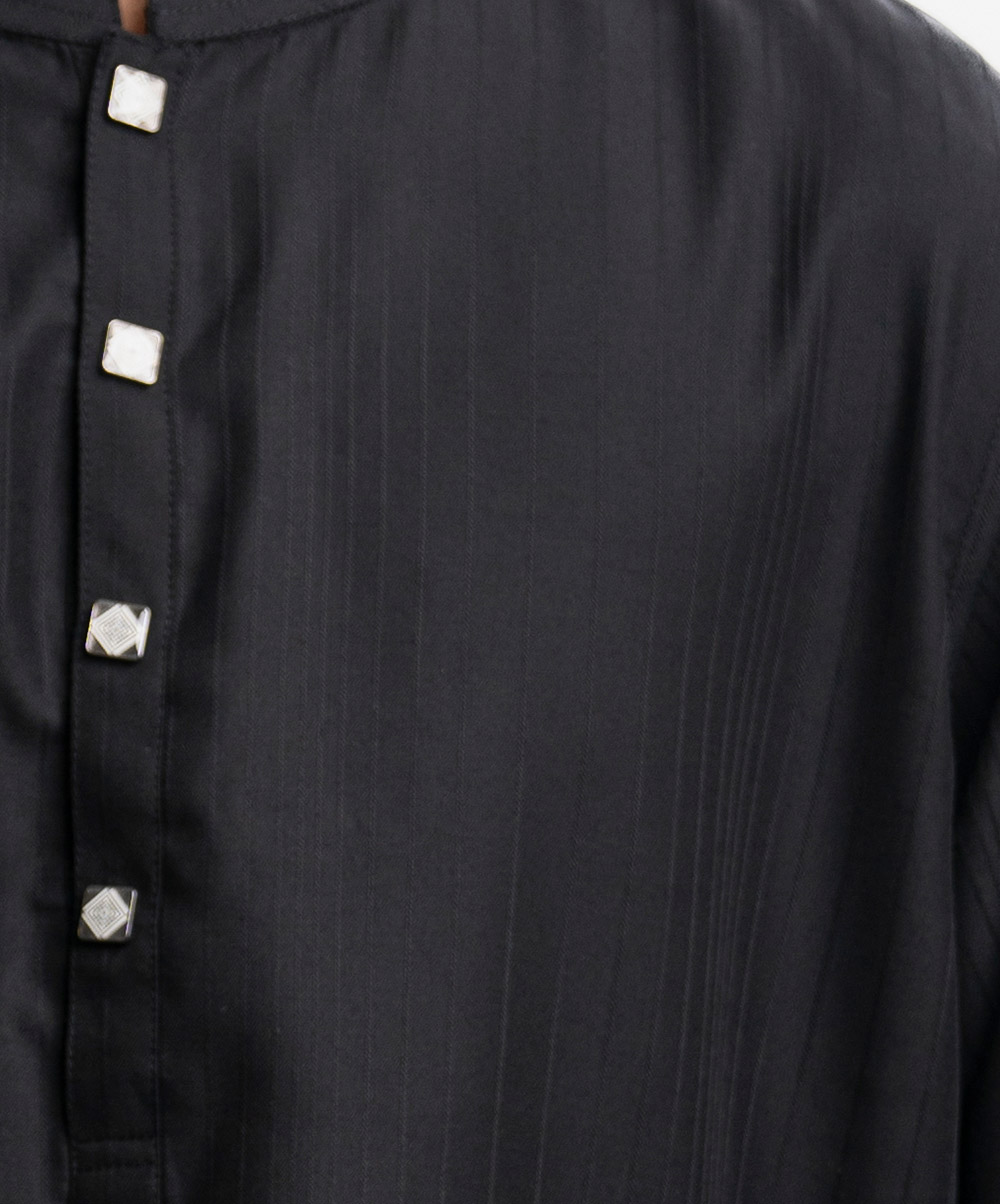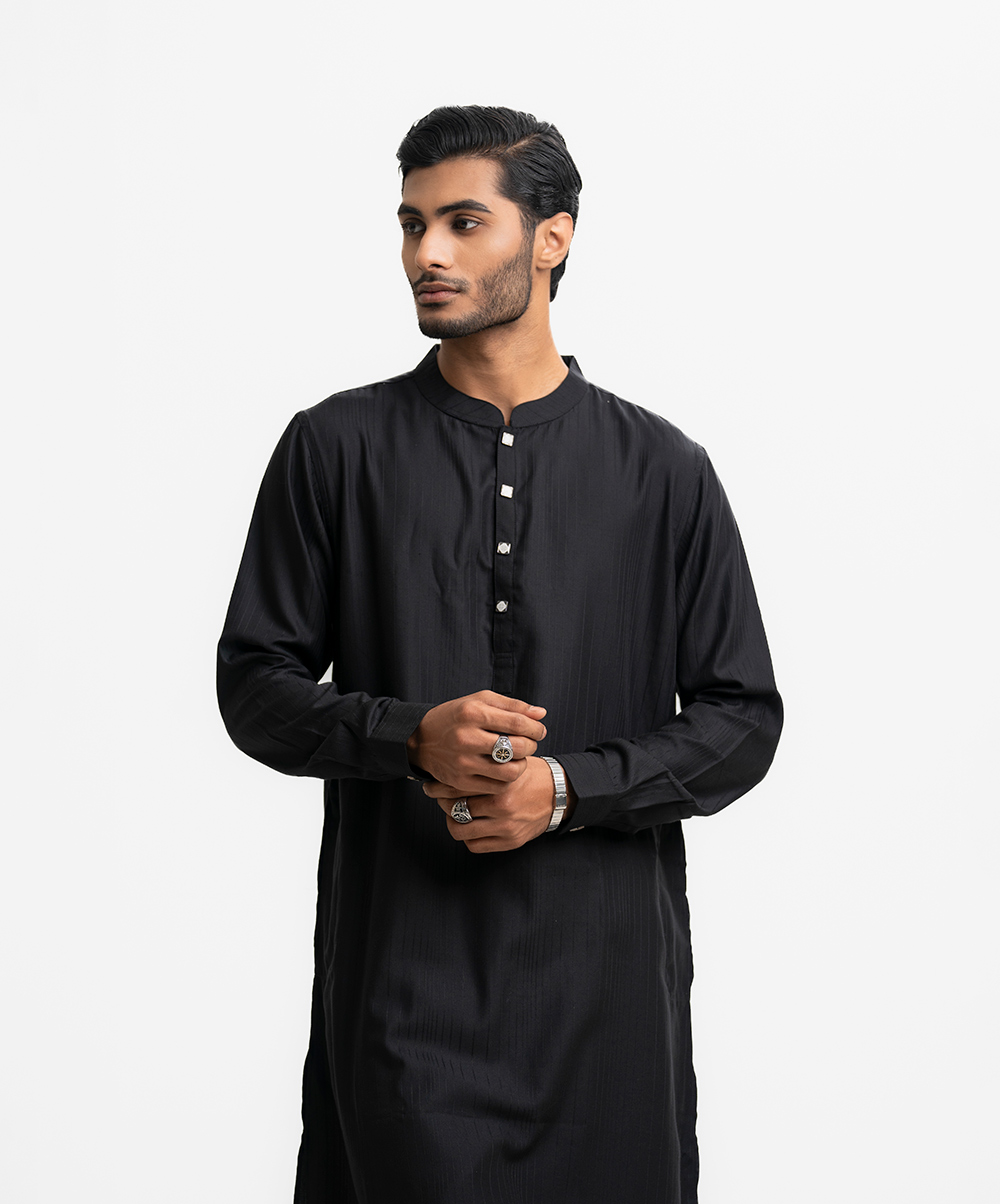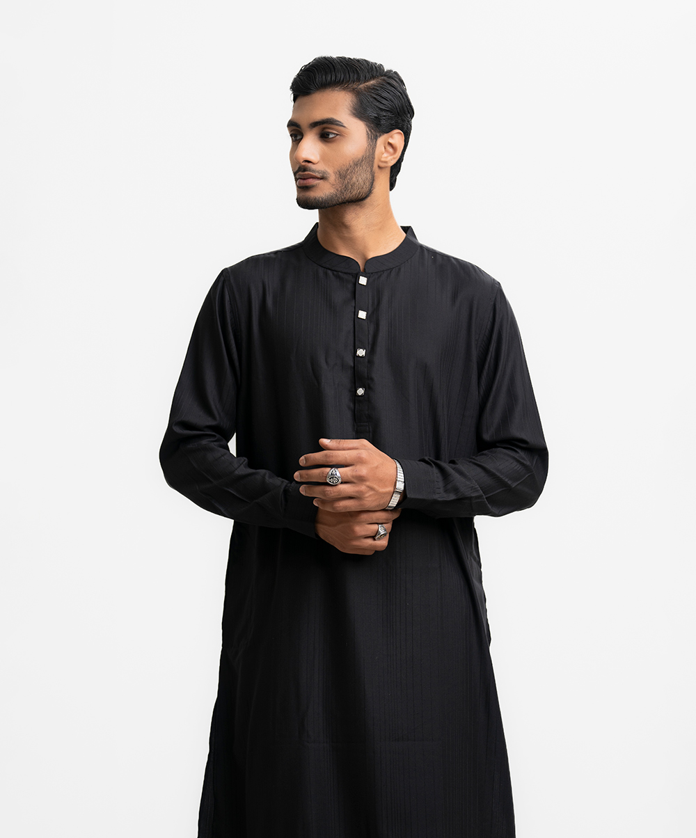 Black Jacquard Semi Fit Panjabi
